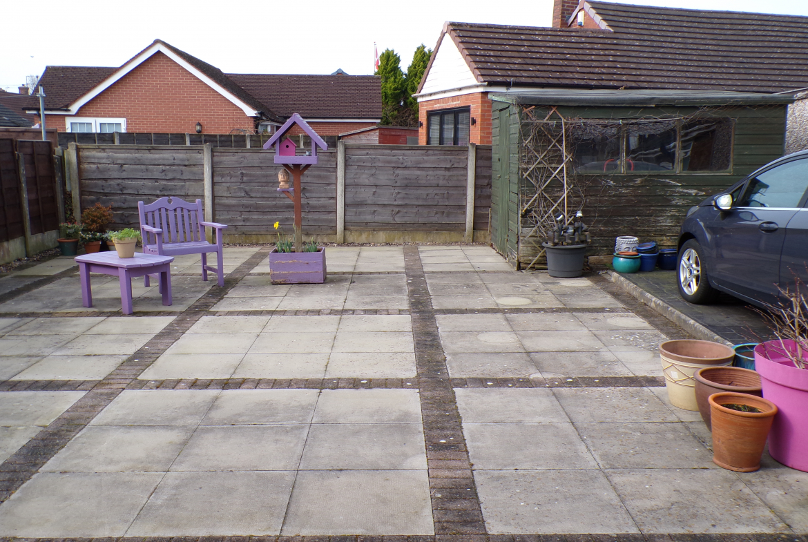 External – Garden to the front, a long driveway to the side and a garden to the rear with flagged patio & timber shed.