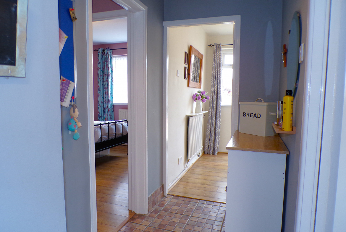 Inner Hallway – Stairs off leading to attic room. Storage cupboard.