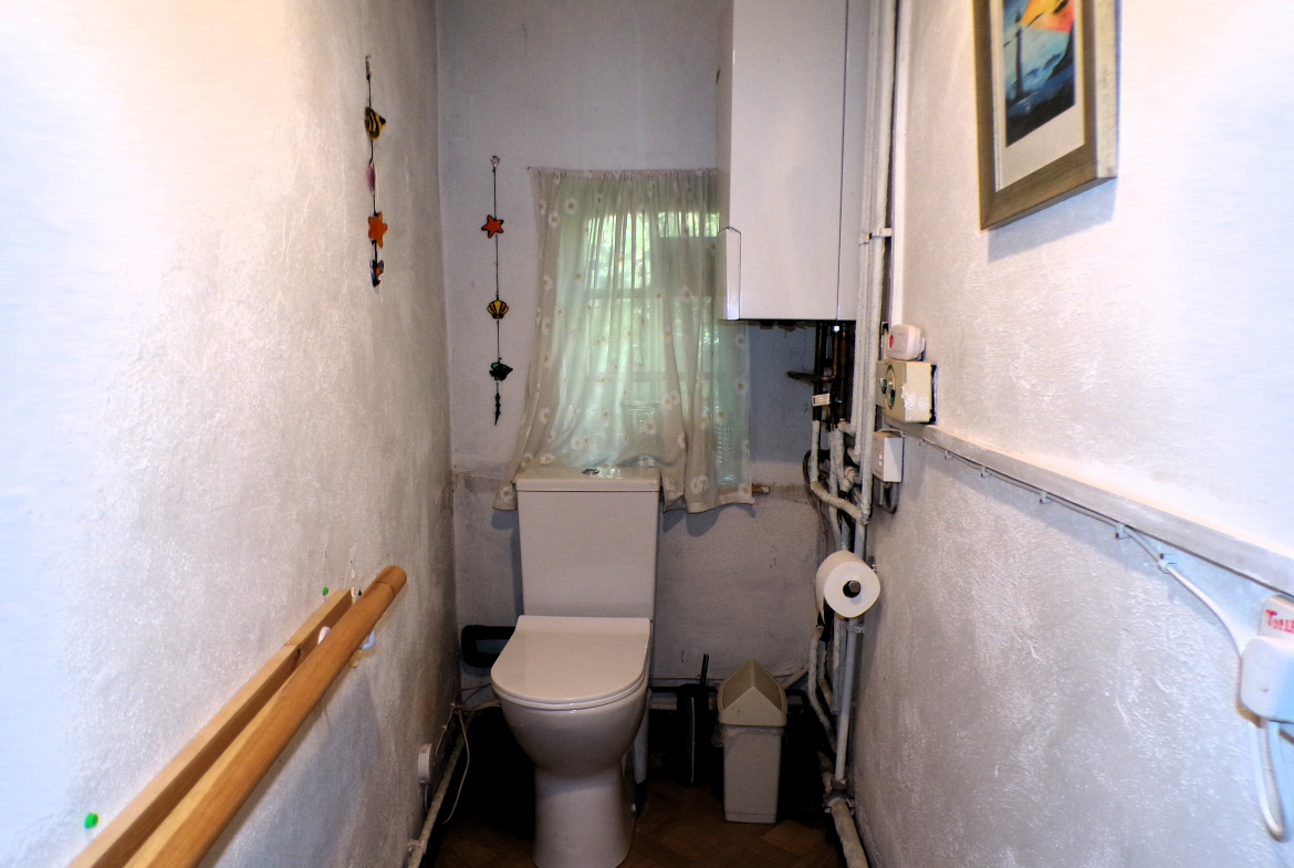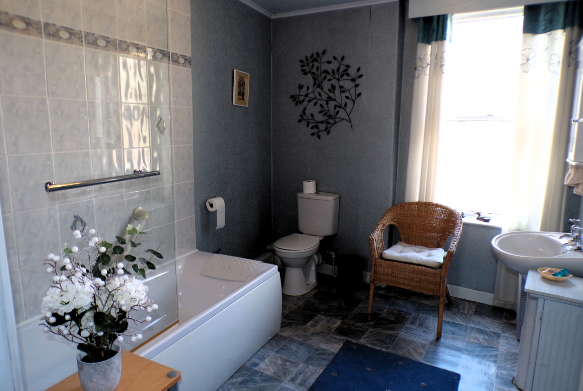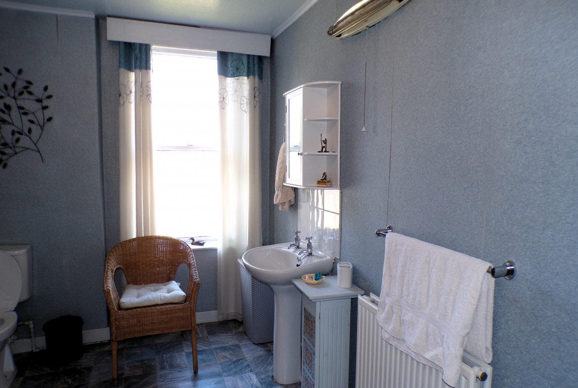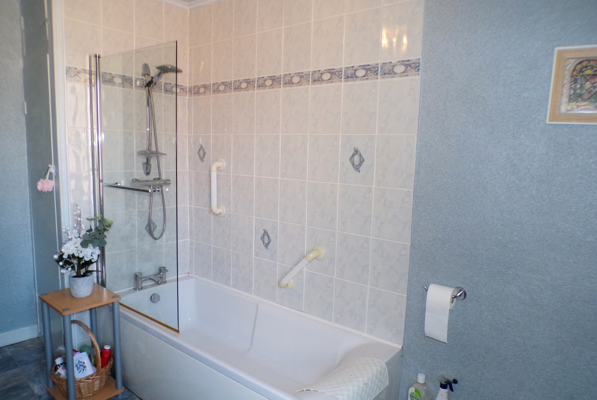 Bathroom – 3 piece white suite. Part ceramic wall tiled. Airing cupboard. Radiator.