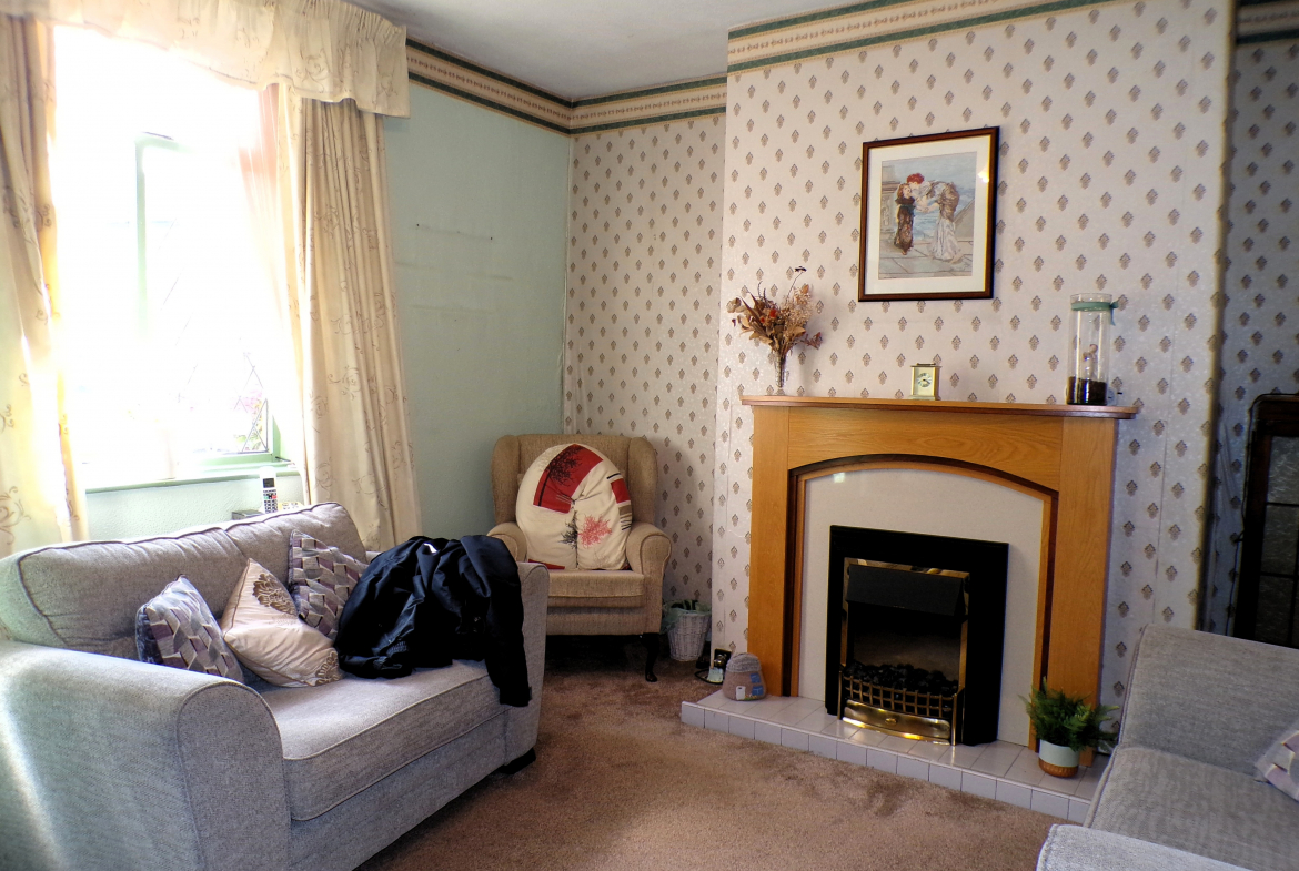 Lounge – 15’07×10’07 – Feature fireplace. Electric fire. Radiator.
