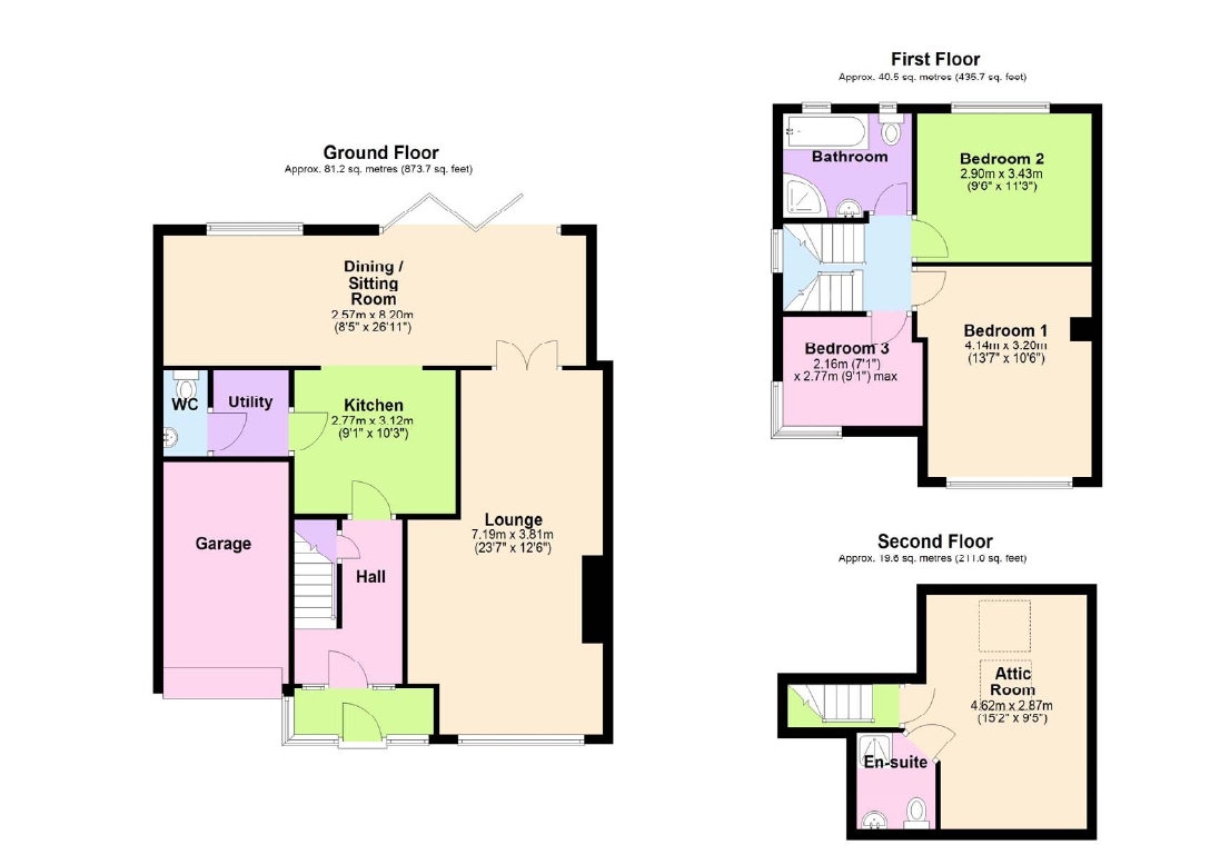 Attic Room – 4.62m x 2.87m (15’2 x 9’5) – Fixed stairs off first floor landing. 2 Velux windows. Radiator.