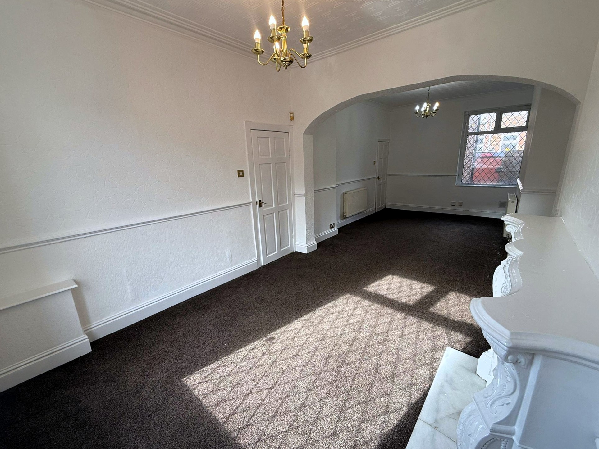 Lounge – 12’2″ x 11’1″ (3.71m x 3.38m) – Feature fireplace. Opening to dining room.