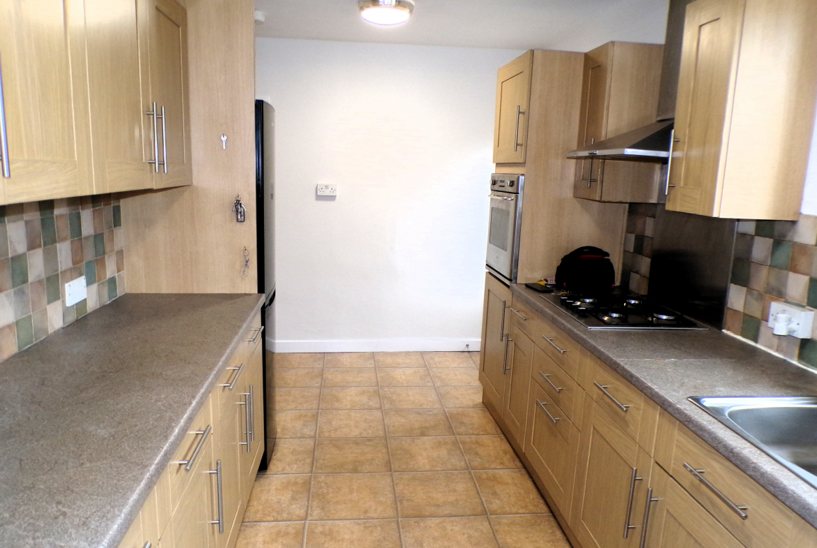 Kitchen – 5.03m x 2.44m (16’6 x 8’0) – Fitted wall & base units incorporating oven, hob & extractor. Stainless steel sink & drainer. Part ceramic wall tiled. Plumbed for washer.