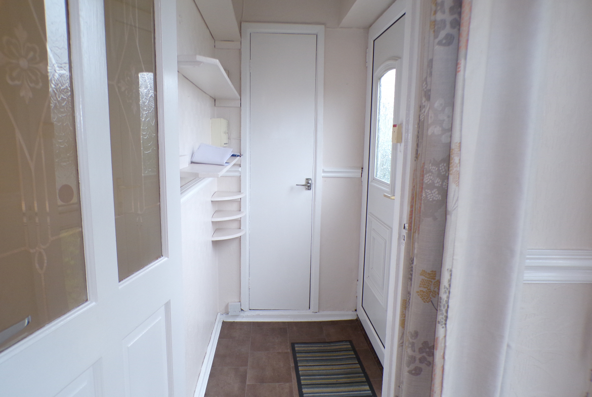 Entrance Hallway – Storage cupboard. Combi gas central heating boiler.