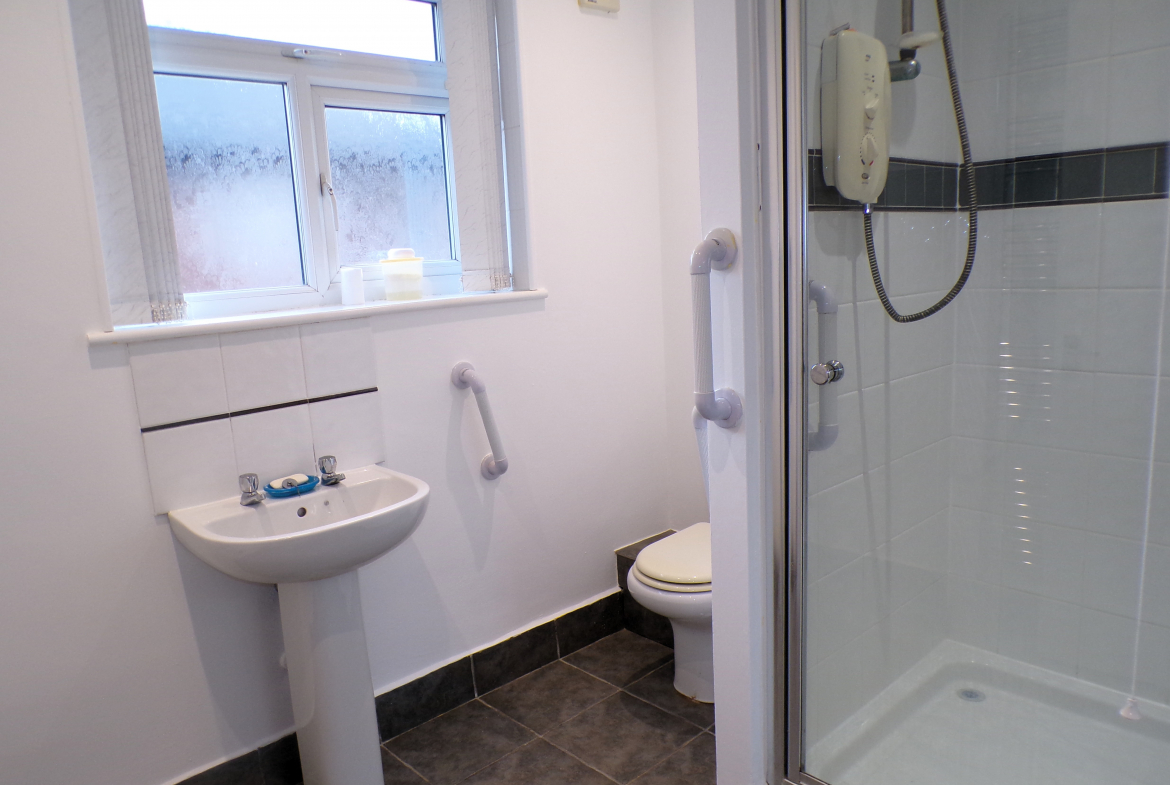 Shower Room – 3 piece shower suite. Part ceramic wall tiled. Ceramic floor tiled. Heated towel rail.