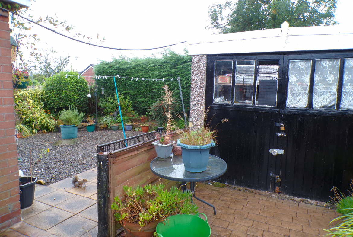 External – gardens to the front & rear. Driveway to side and detached garage to the rear.
