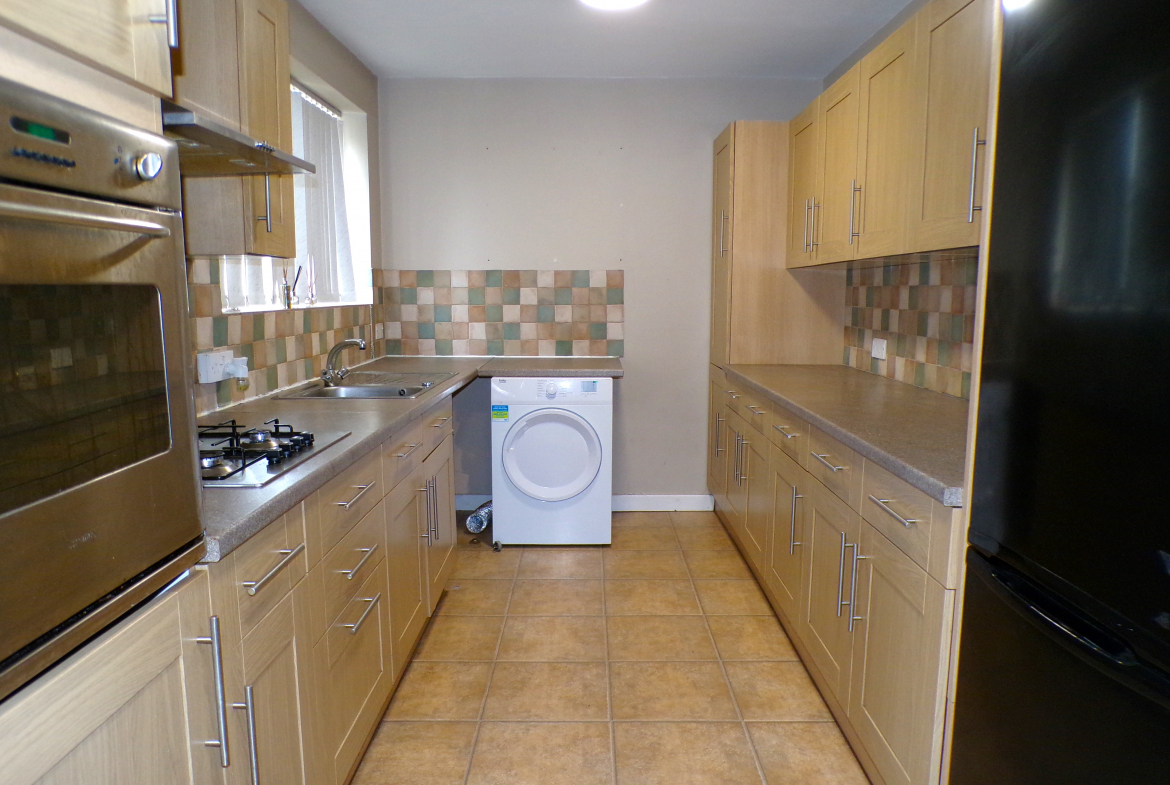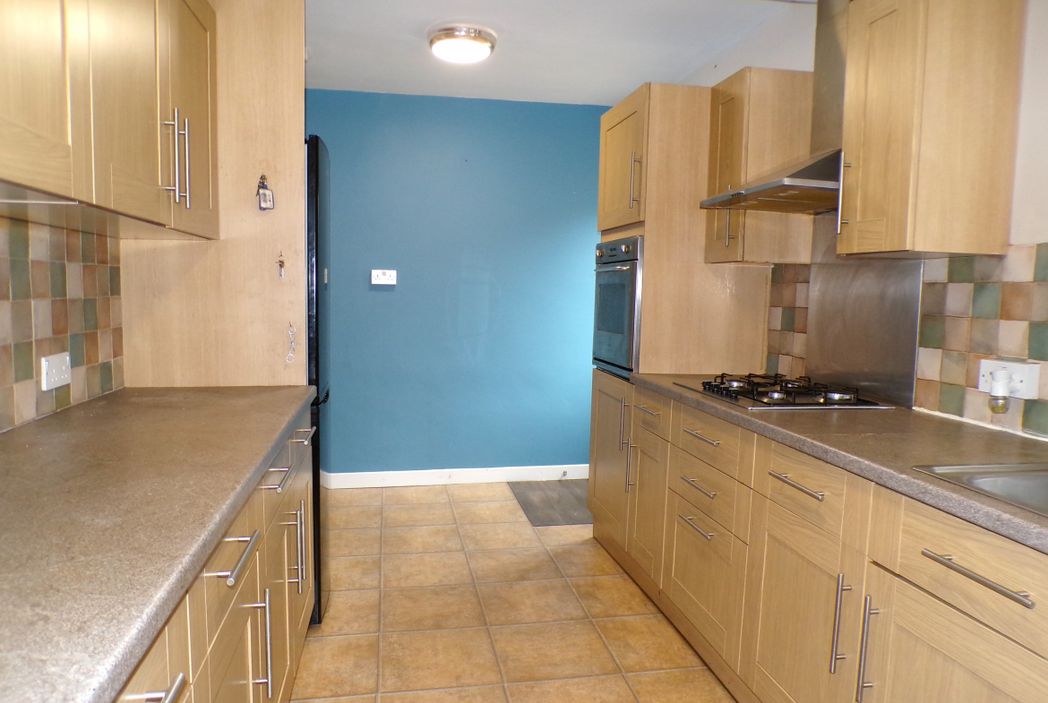 Kitchen – 5.03m x 2.44m (16’6 x 8’0) – Fitted wall & base units incorporating oven, hob & extractor. Stainless steel sink & drainer. Part ceramic wall tiled. Plumbed for washer.