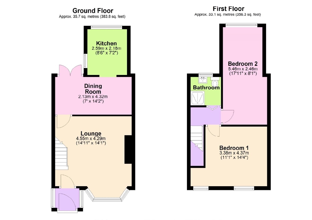 Bedroom 2 – 5.46m x 2.46m (17’11 x 8’1) – Rear aspect. 2 radiators.