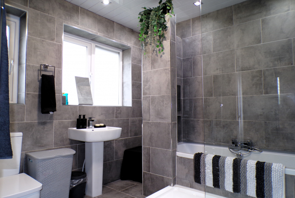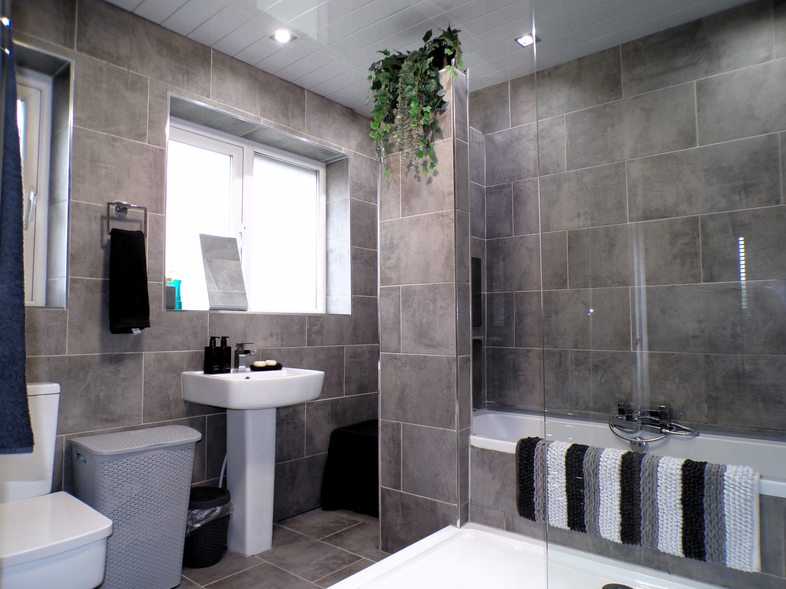 Bathroom – Modern 4 piece white suite including independent shower cubicle. Ceramic wall & floor tiled. Heated towel rail.