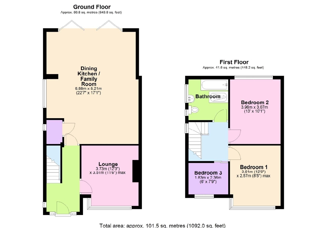 Lounge – 12’3 x 11’6 (3.73m x 3.51m) Radiator.