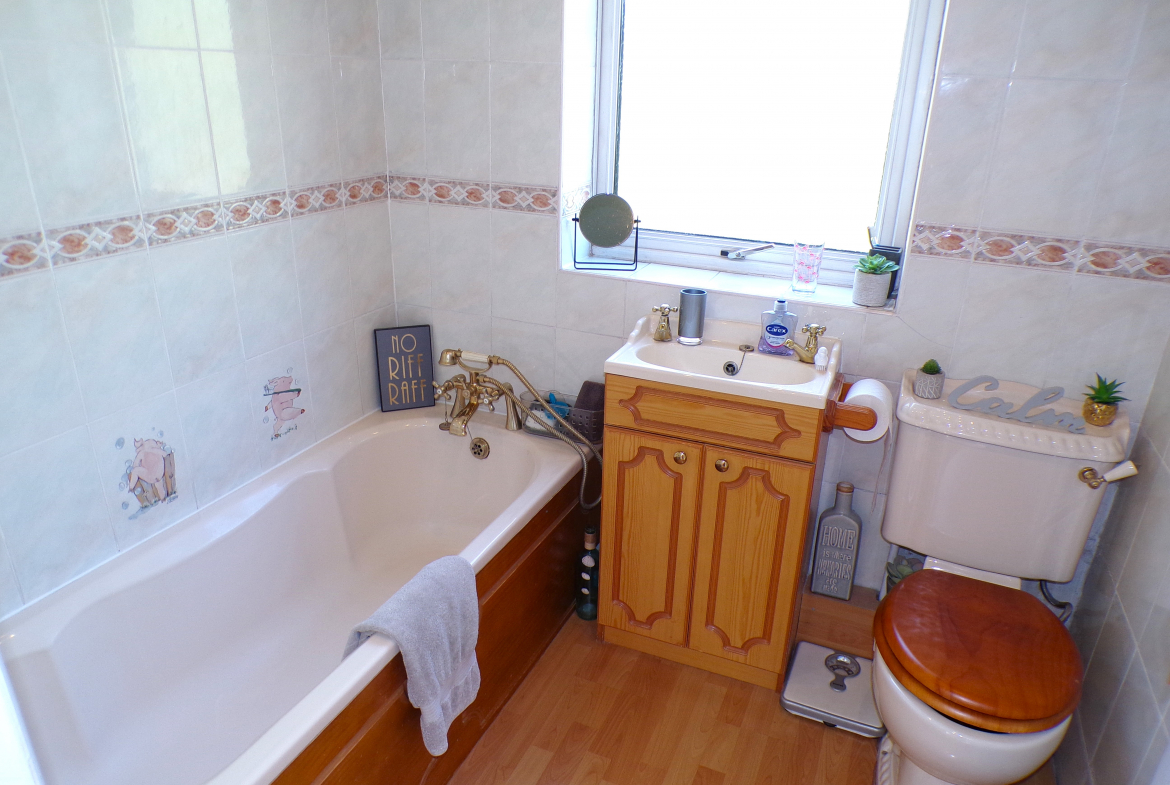 Bathroom – 3 piece suite. Ceramic wall tiled. Radiator.