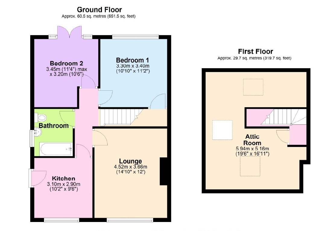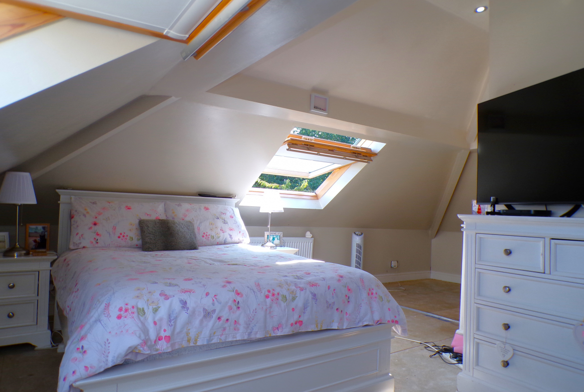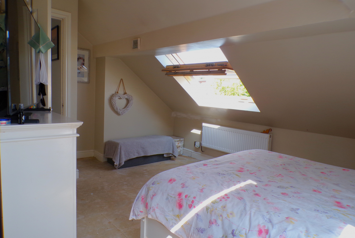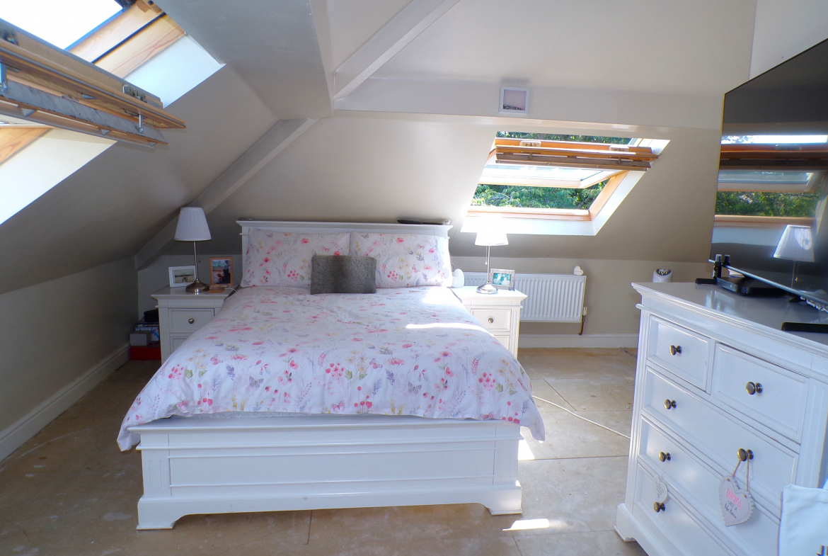 Attic Room – 5.94m (max) x 5.08m (19’6 (max) x 16’8) – 2 Velux windows. Radiator. Fixed stairs from hallway.