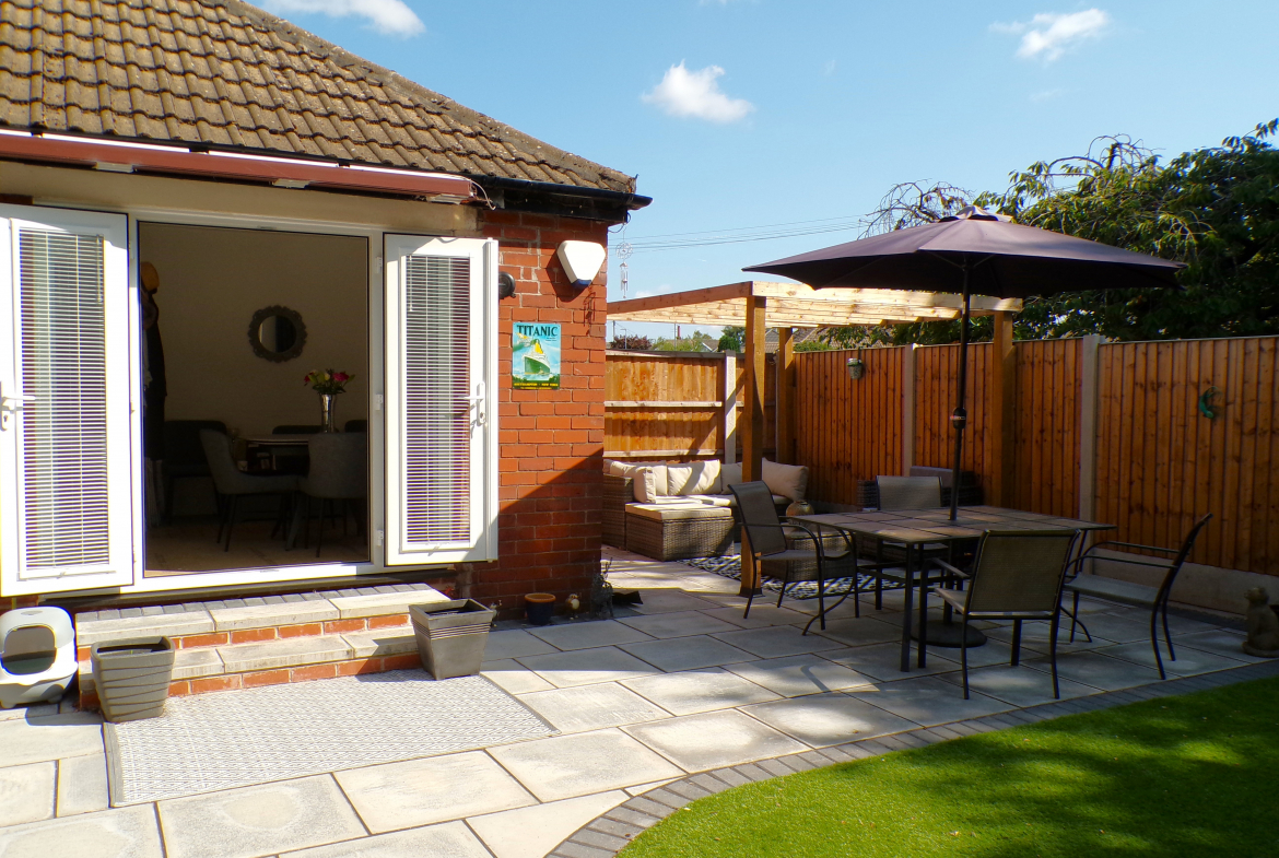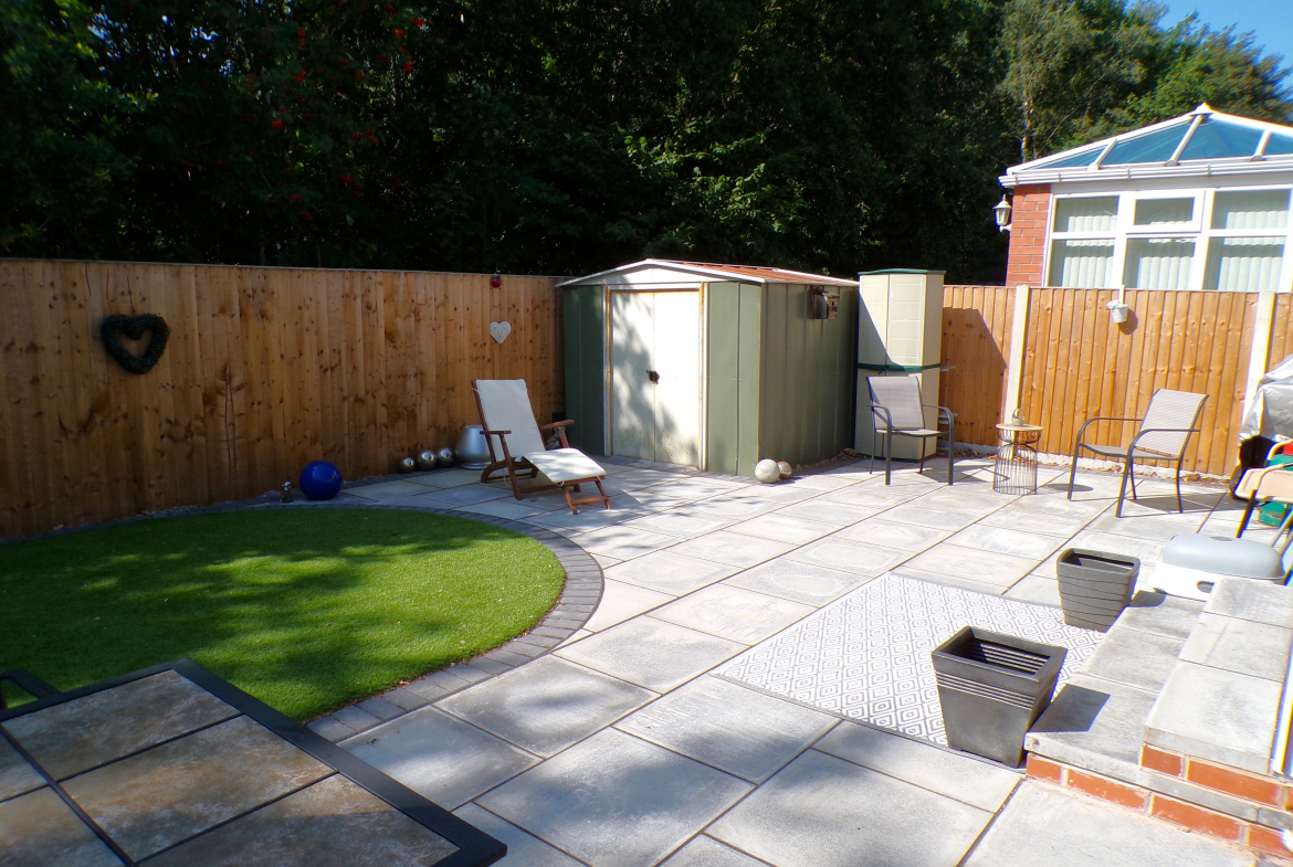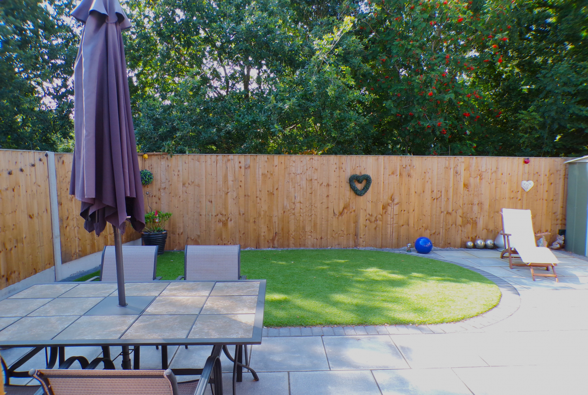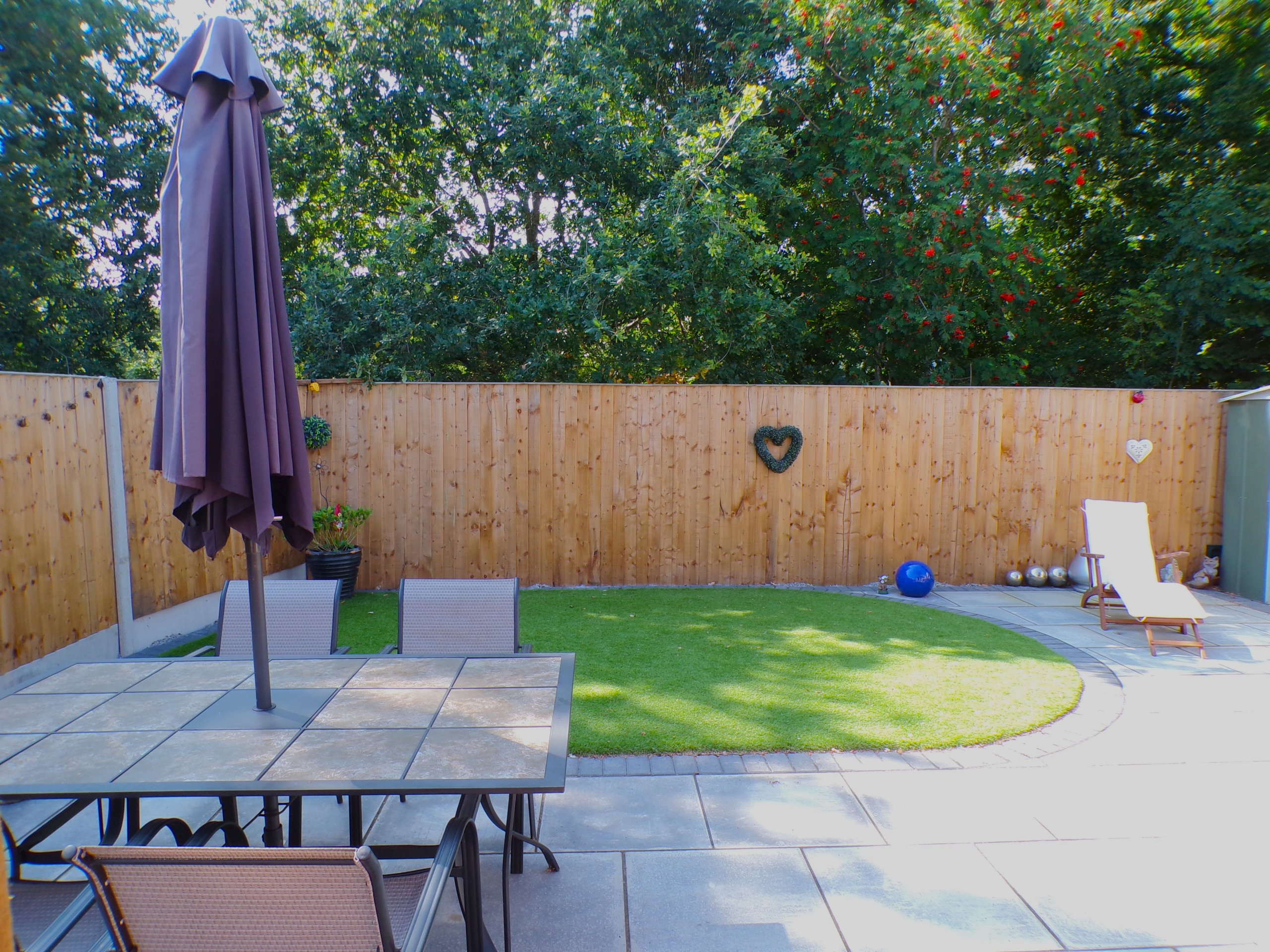 External – Good sized plot with a large flagged driveway to the front & side and a good sized garden to the rear with artificial lawn, patio & shed. Not overlooked at the rear.