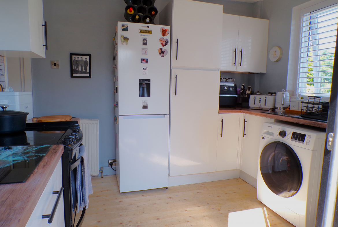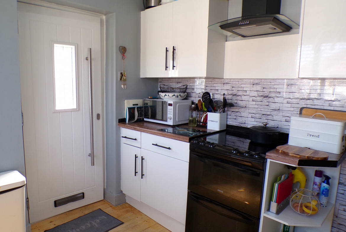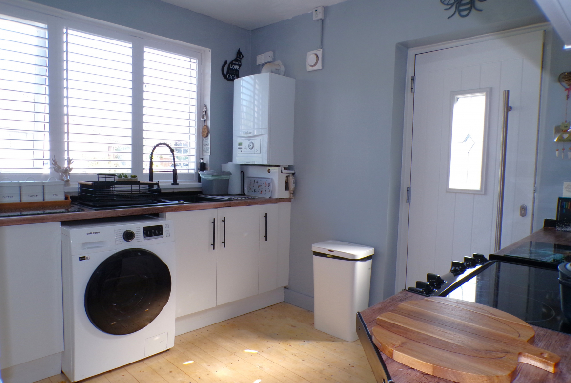 Kitchen – 3.10m x 2.90m (10’2 x 9’6) – Modern fitted wall & base units. Single sink, rinser & drainer. Plumbed for washer. Combi gas central heating boiler. Radiator.