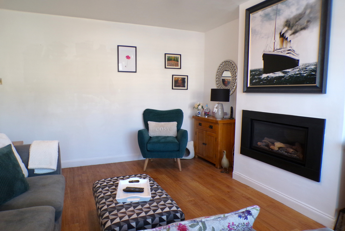 Lounge – 4.52m x 3.66m (14’10 x 12’0) – Inset modern living flame gas fire. Modern vertical radiator.
