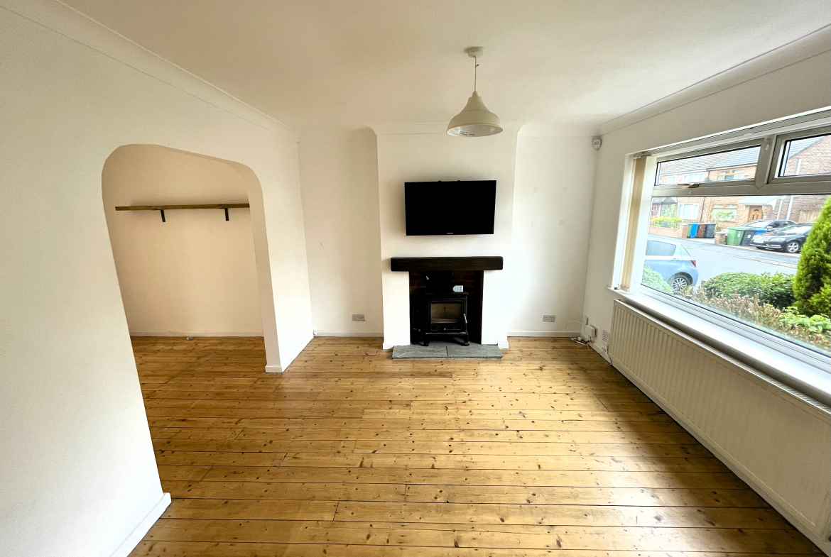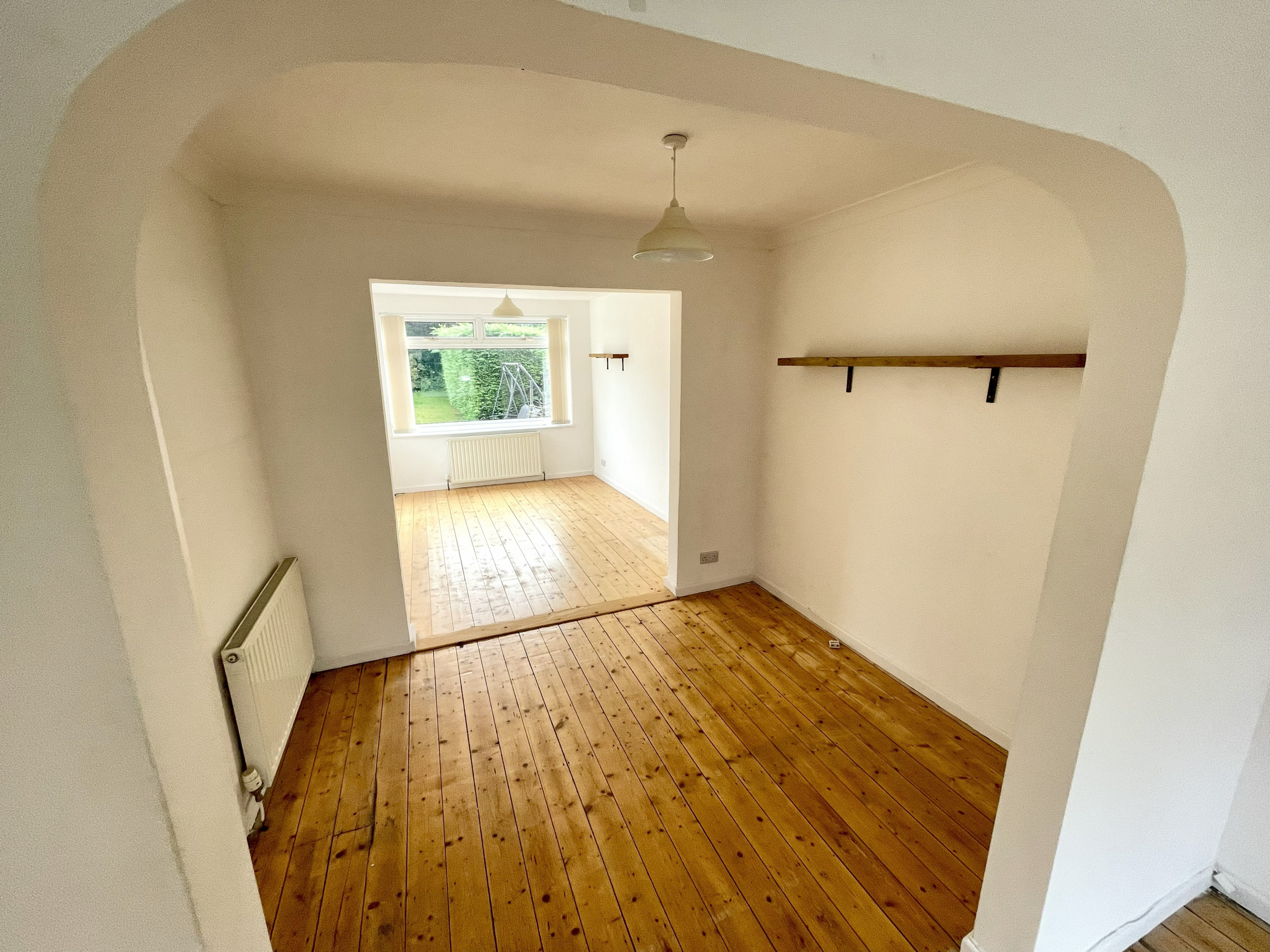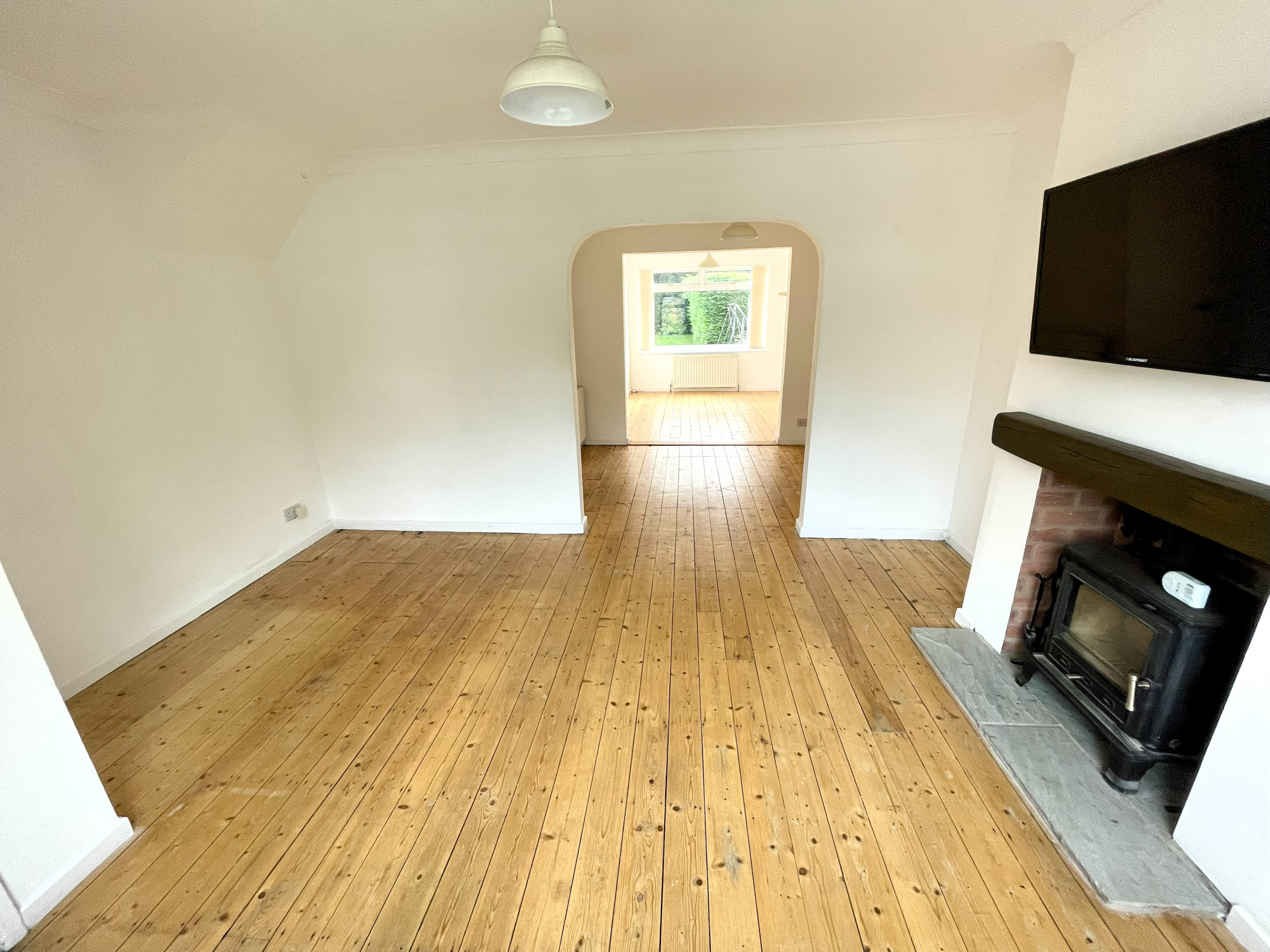 Lounge – 3.43m x 4.42m (11’3 x 14’6) – Log burner fire. Radiator. Arch through to dining room.