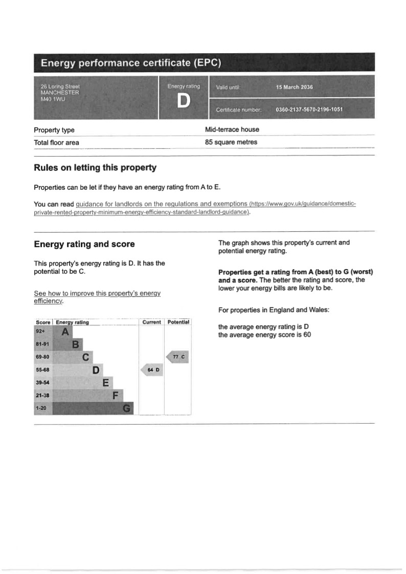 Tenure & Council Tax – We have been advised that this property is Freehold. The council tax is in Band A with Manchester Council.