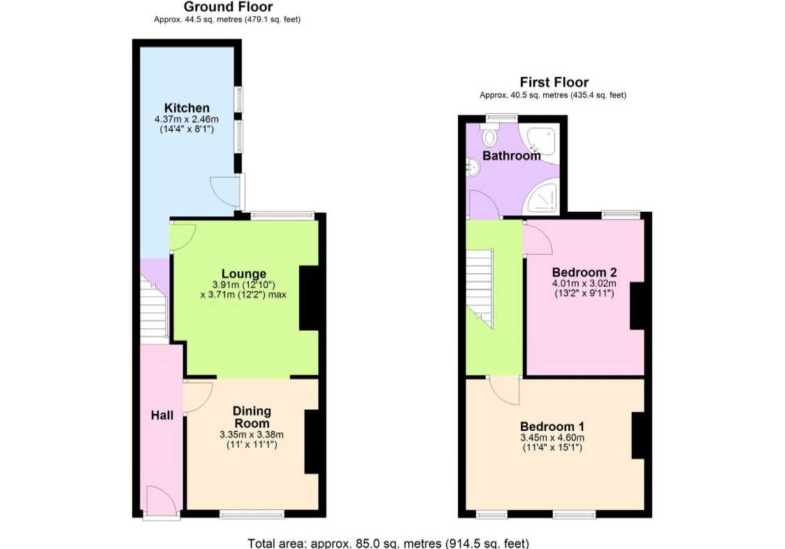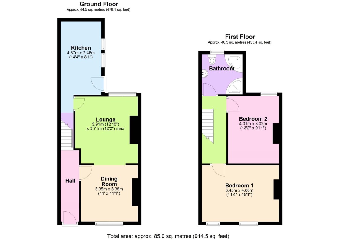 Bedroom 1 – 3.45m x 4.60m (11’4 x 15’1) – Front aspect. Radiator.
