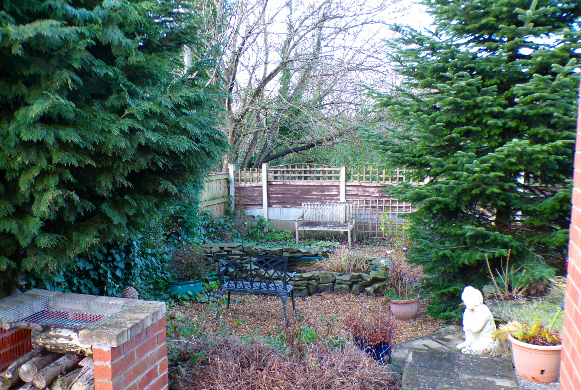 External – Garden to the front, a driveway to the side and a large plot with gardens to the side and rear with lawn, patio, PVC decking, pond and timber shed. Overlooks fields to the rear.