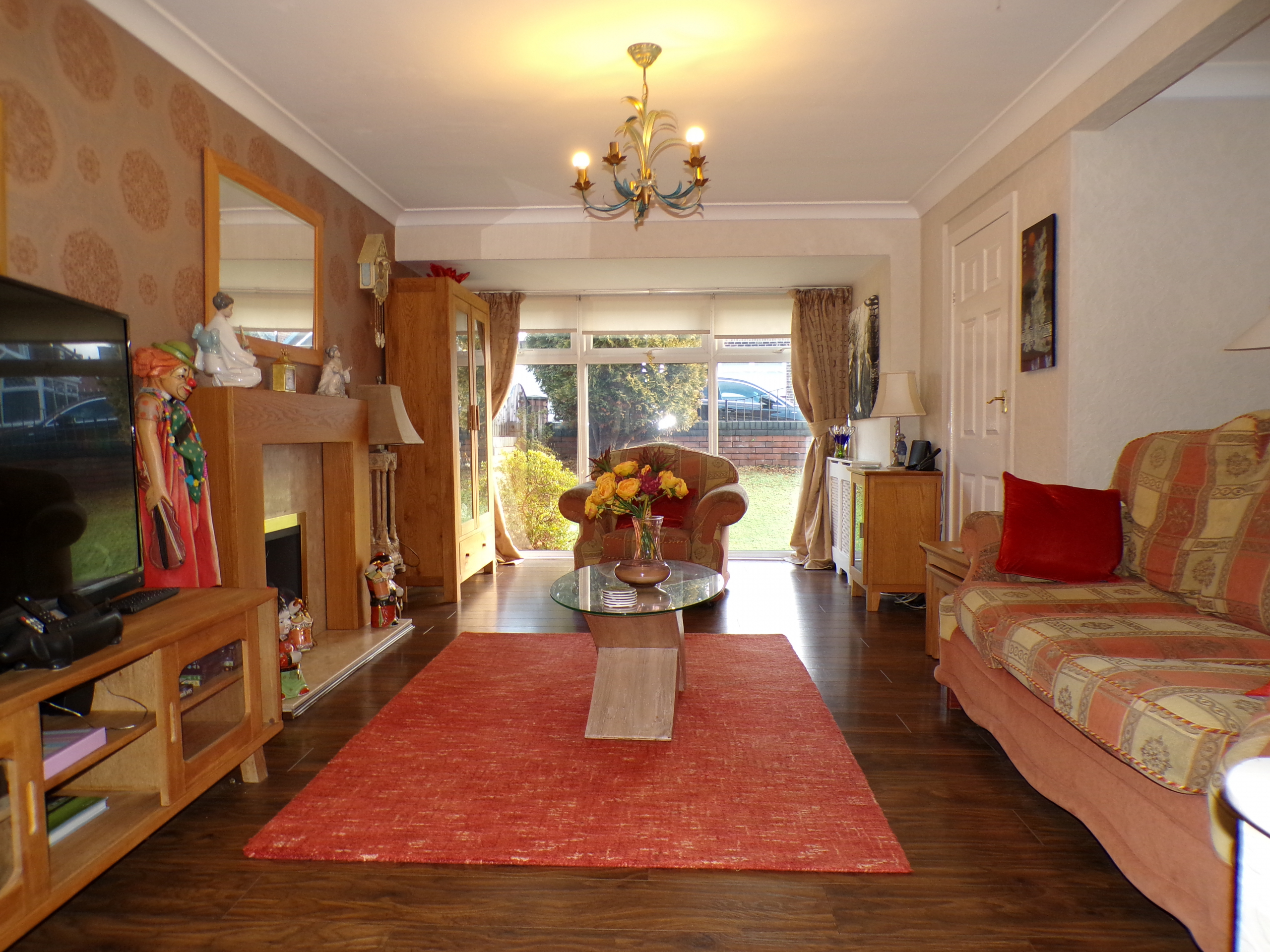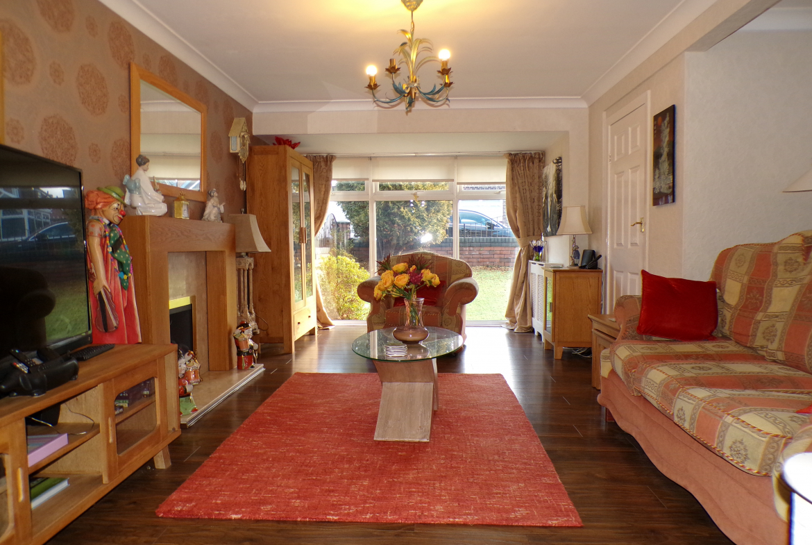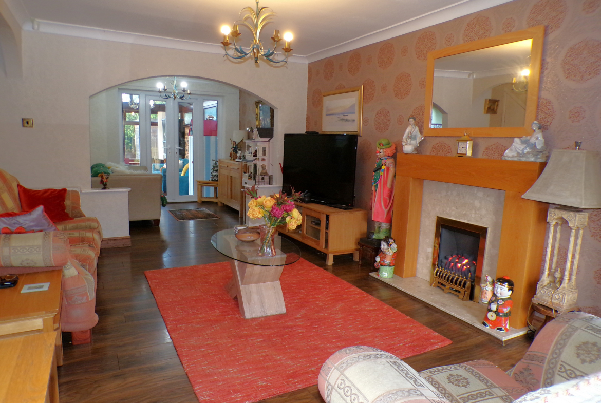 Lounge – 5.82m x 4.17m (19’1 x 13’8) – Living flame gas fire. Feature fireplace. 2 radiators. Arch through to sitting room.