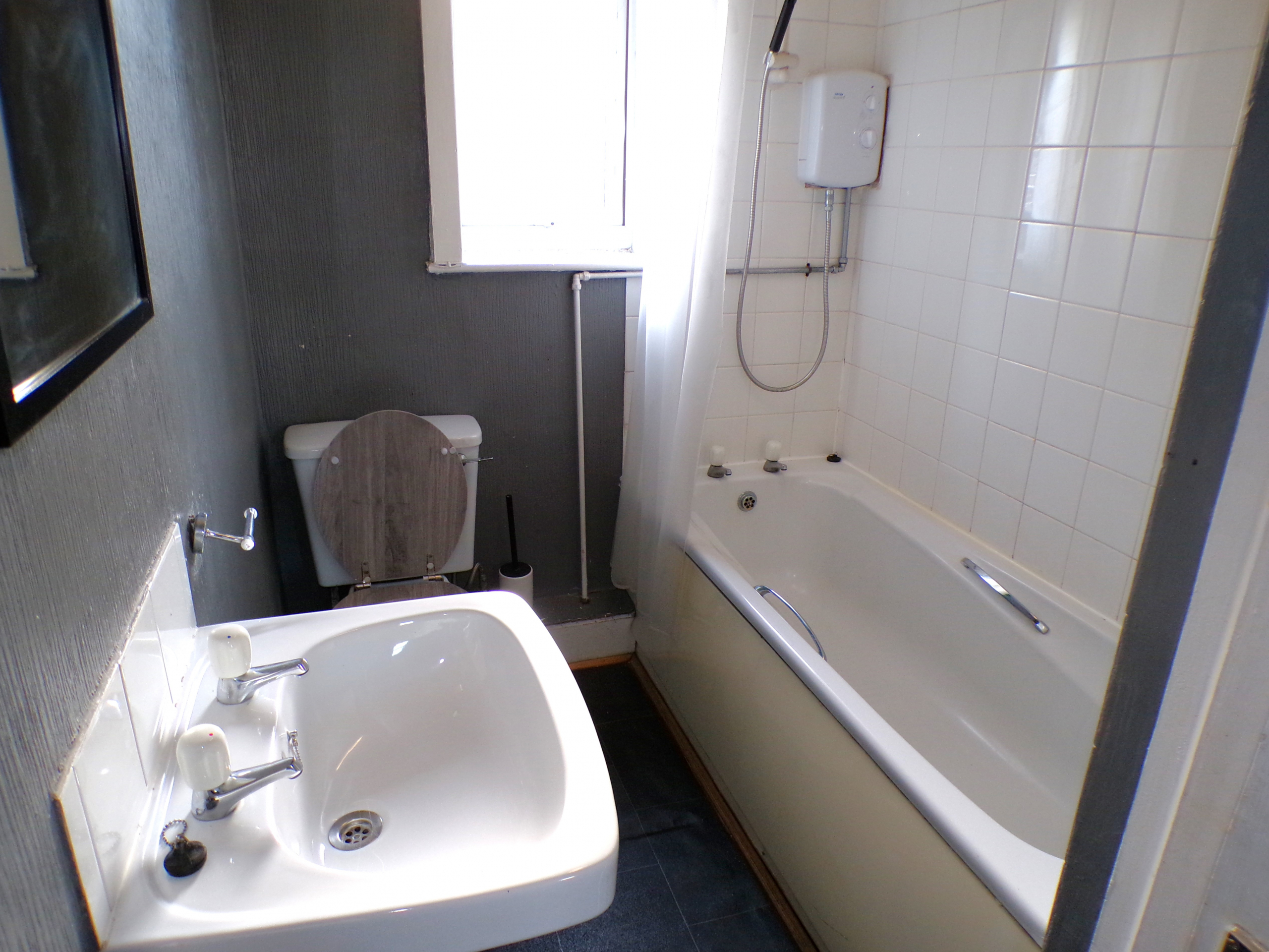 Bathroom – 3 piece white suite with electric shower to bath. Part ceramic wall tiled. Radiator.