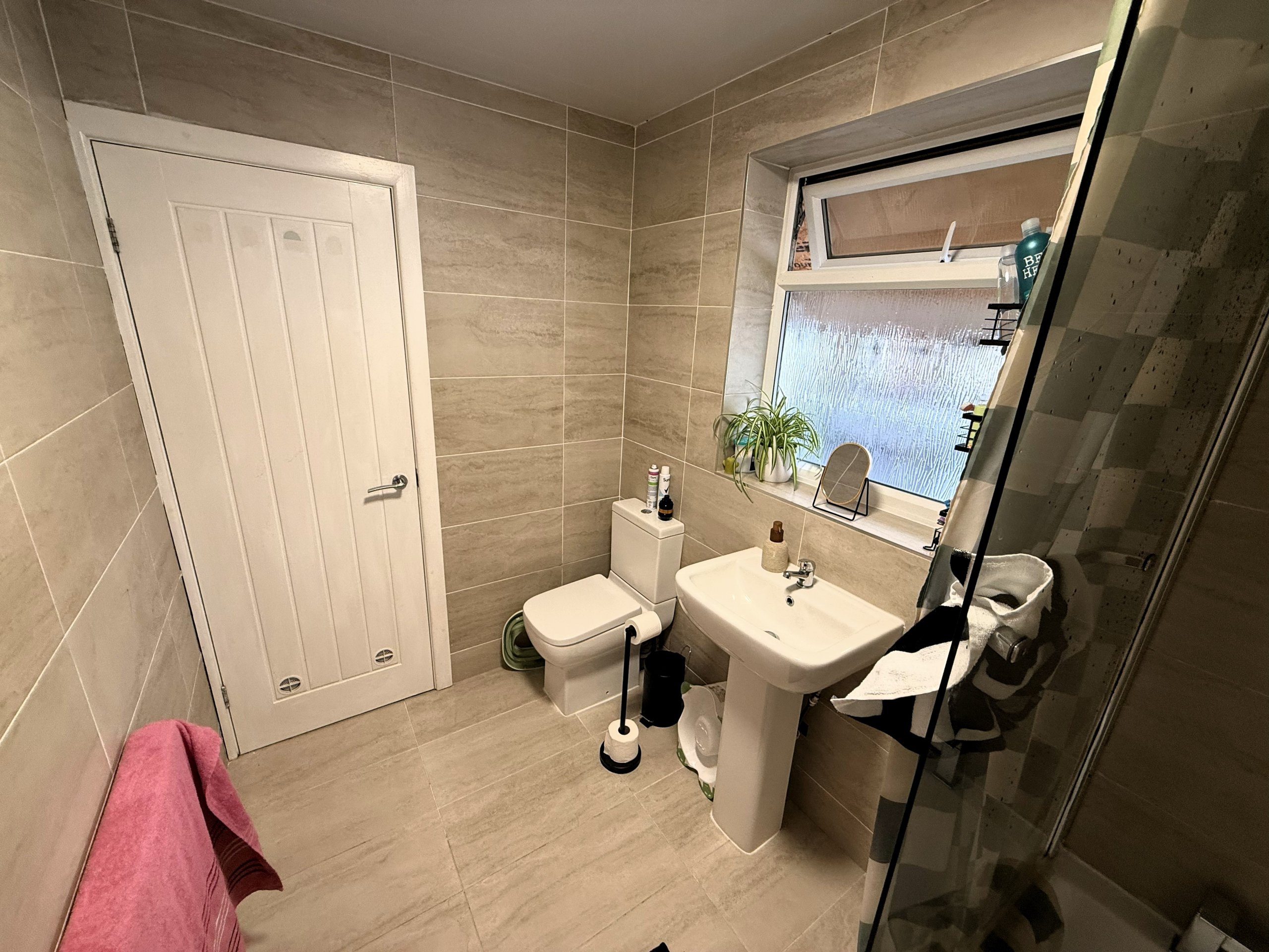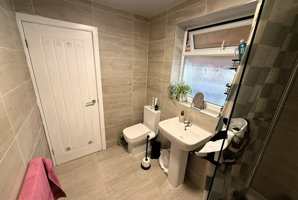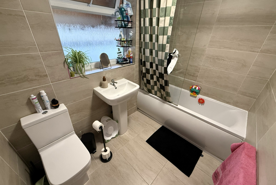 Downstairs Bathroom – Modern 3 piece white suite with shower to bath. Ceramic wall & floor tiled. Radiator.