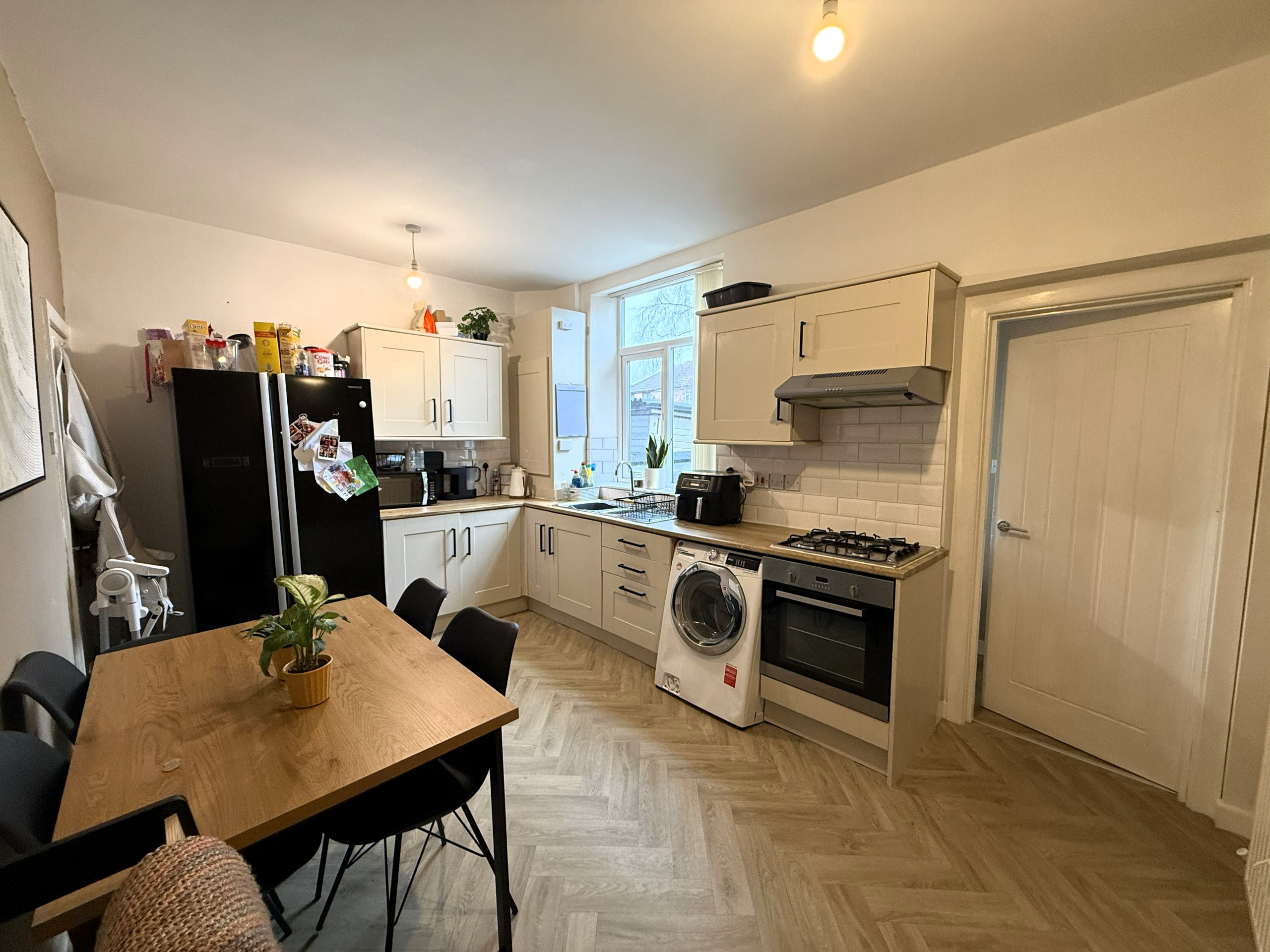 Dining Kitchen – 3.12m x 4.39m (10’2″ x 14’4″) – Modern fitted wall & base units incorporating oven, hob & extractor. Stainless steel sink, rinser & drainer. Part ceramic wall tiled. Plumbed for washer. Under stairs storage. Combi gas central heating boiler.