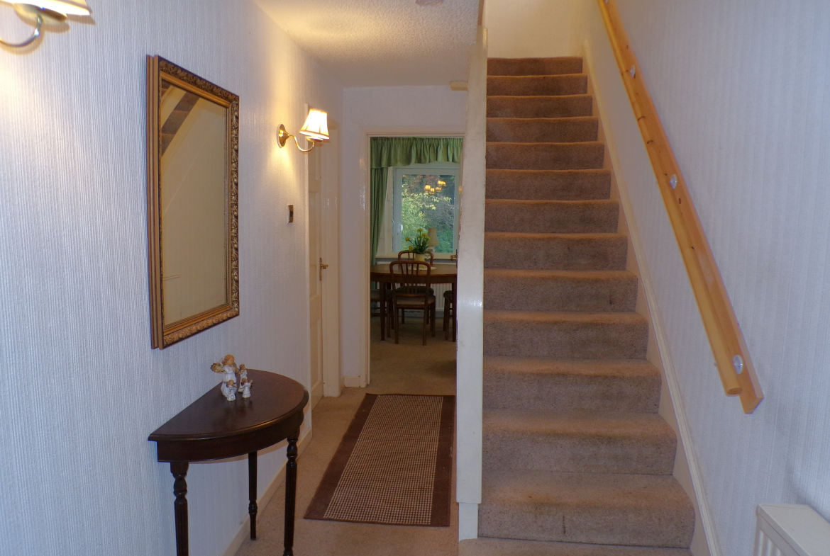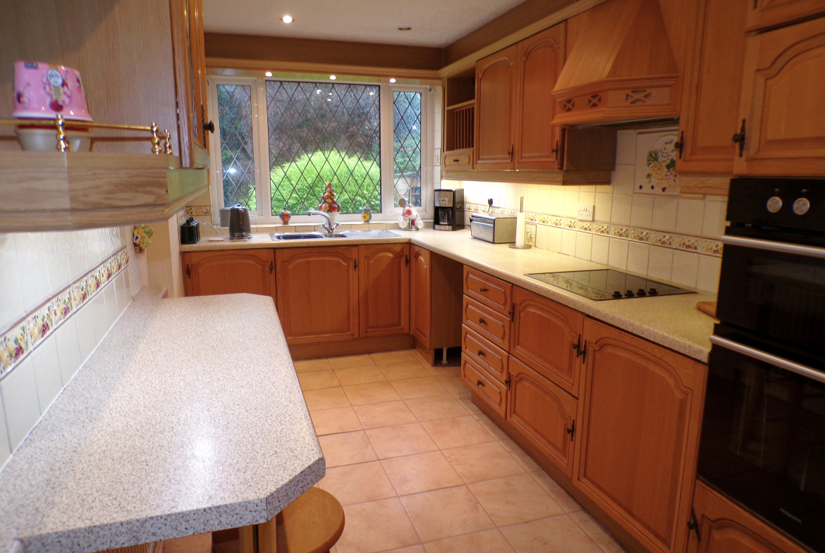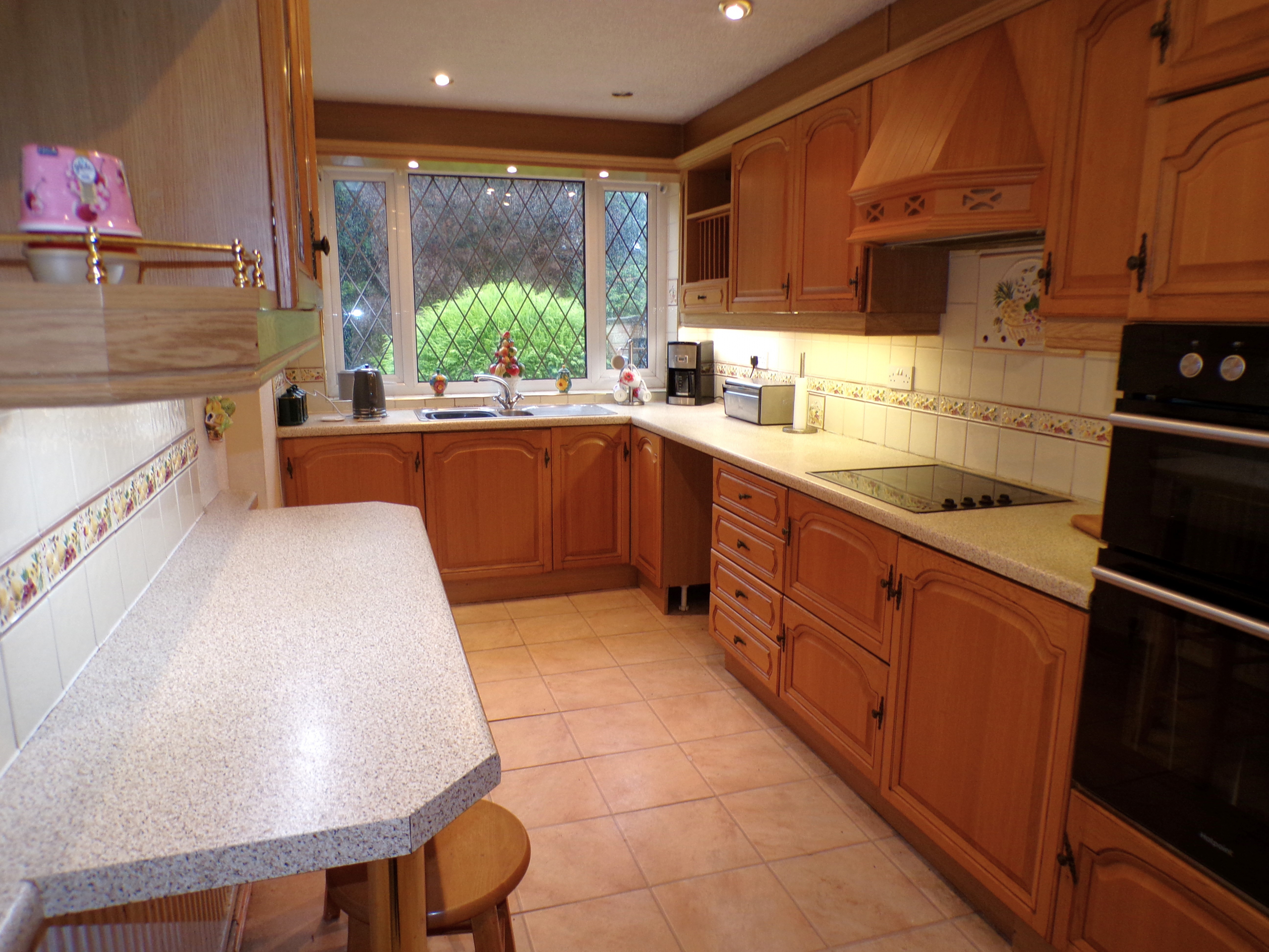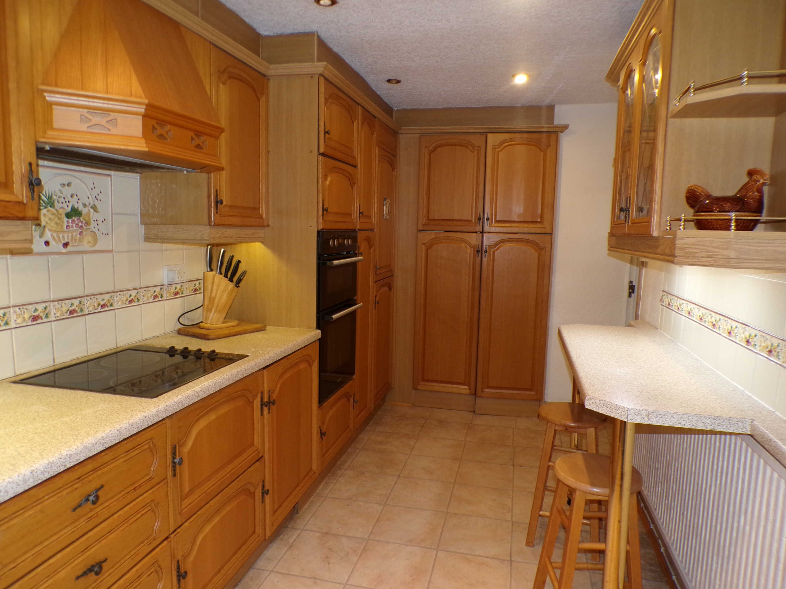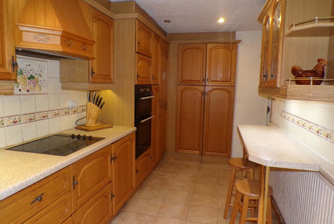 Kitchen – 5.16m x 2.26m (16’11 x 7’5) – Fitted wall & base units incorporating oven, hob & extractor. Stainless steel sink, rinser & drainer. Integrated fridge & freezer. Plumbed for washer. Part ceramic wall tiled. Radiator.