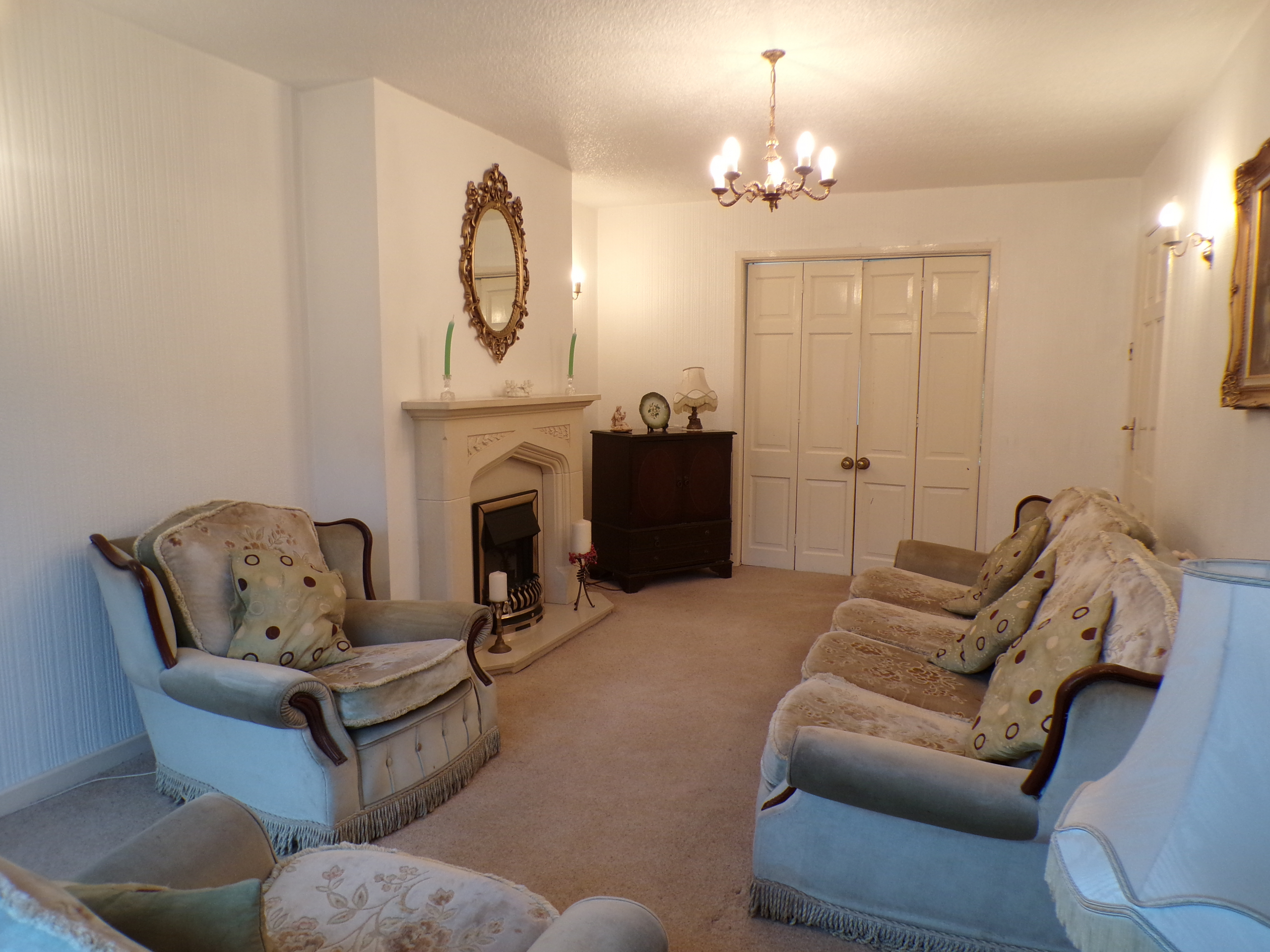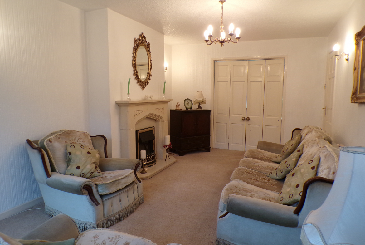 Lounge – 5.59m x 3.18m (18’4 x 10’5) – Fitted electric fire. Feature fireplace. Radiator. Double doors through to dining room.