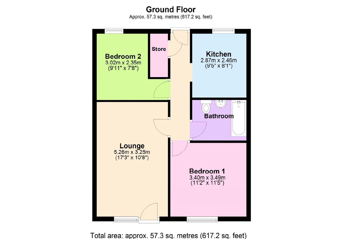 Lounge – 5.26m x 3.25m (17’3 x 10’8) – 2 radiators.