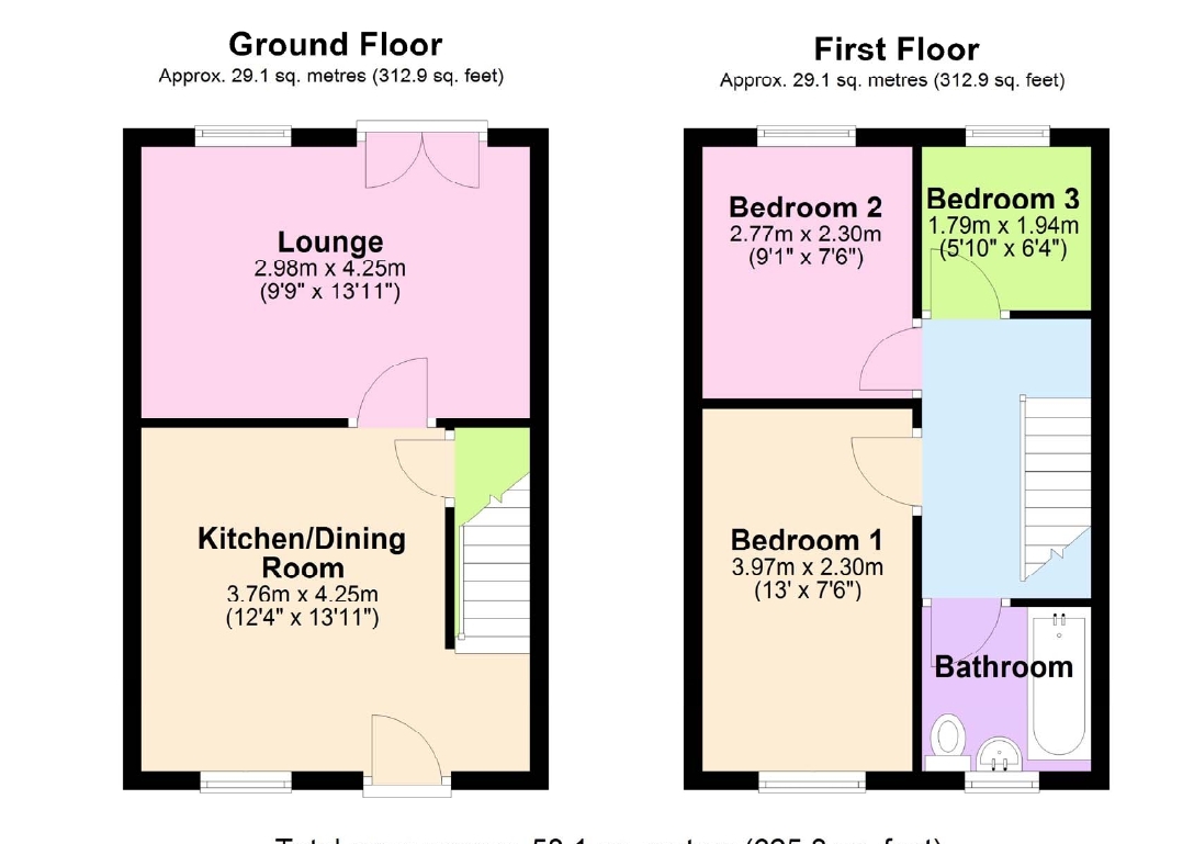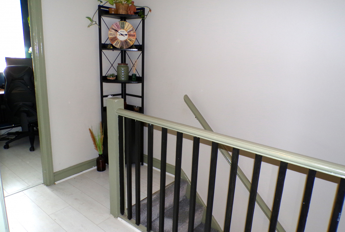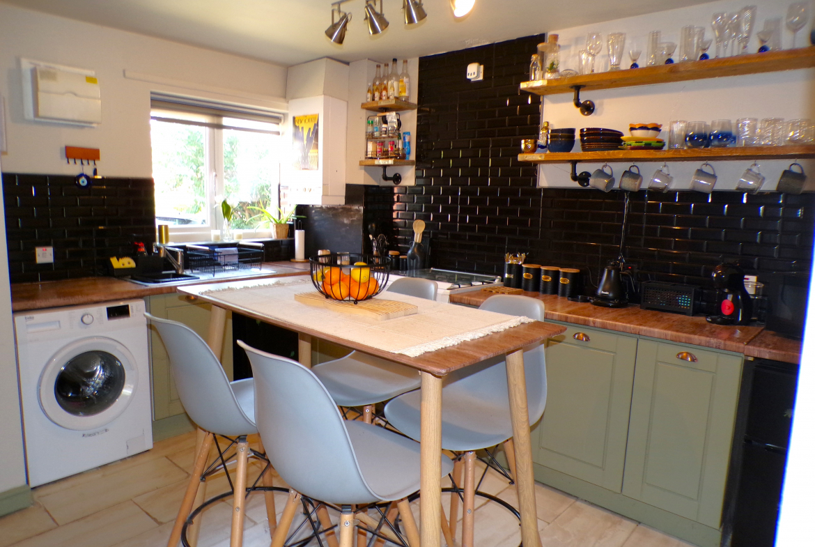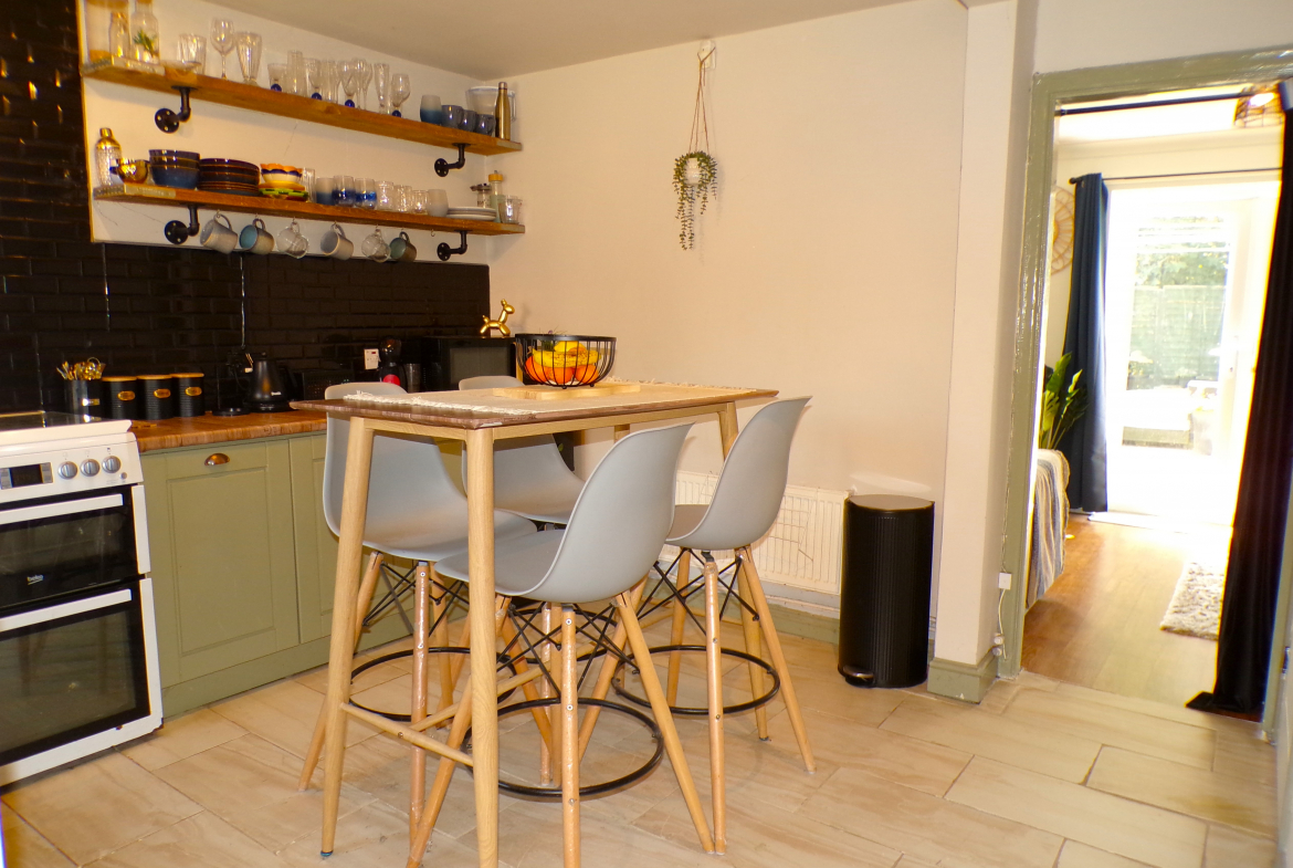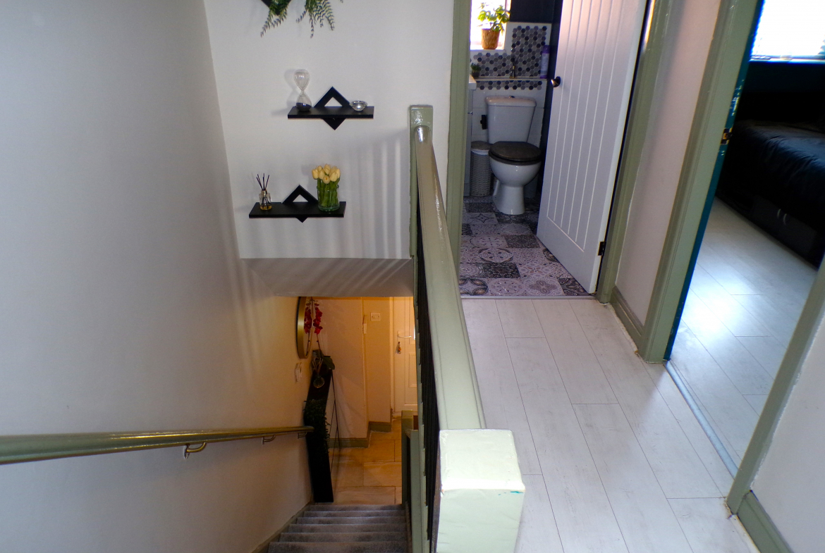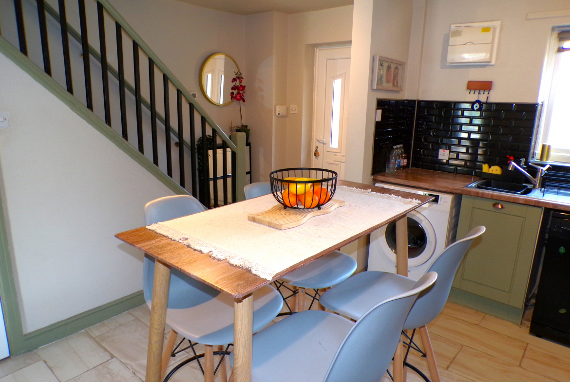 Kitchen Diner – 3.78m x 3.38m (12’5 x 11’1) – Fitted wall & base units. Stainless steel sink & drainer. Stairs off. Under stairs storage. Part ceramic wall tiled. Combi gas central heating boiler. Plumbed for washer. Radiator.