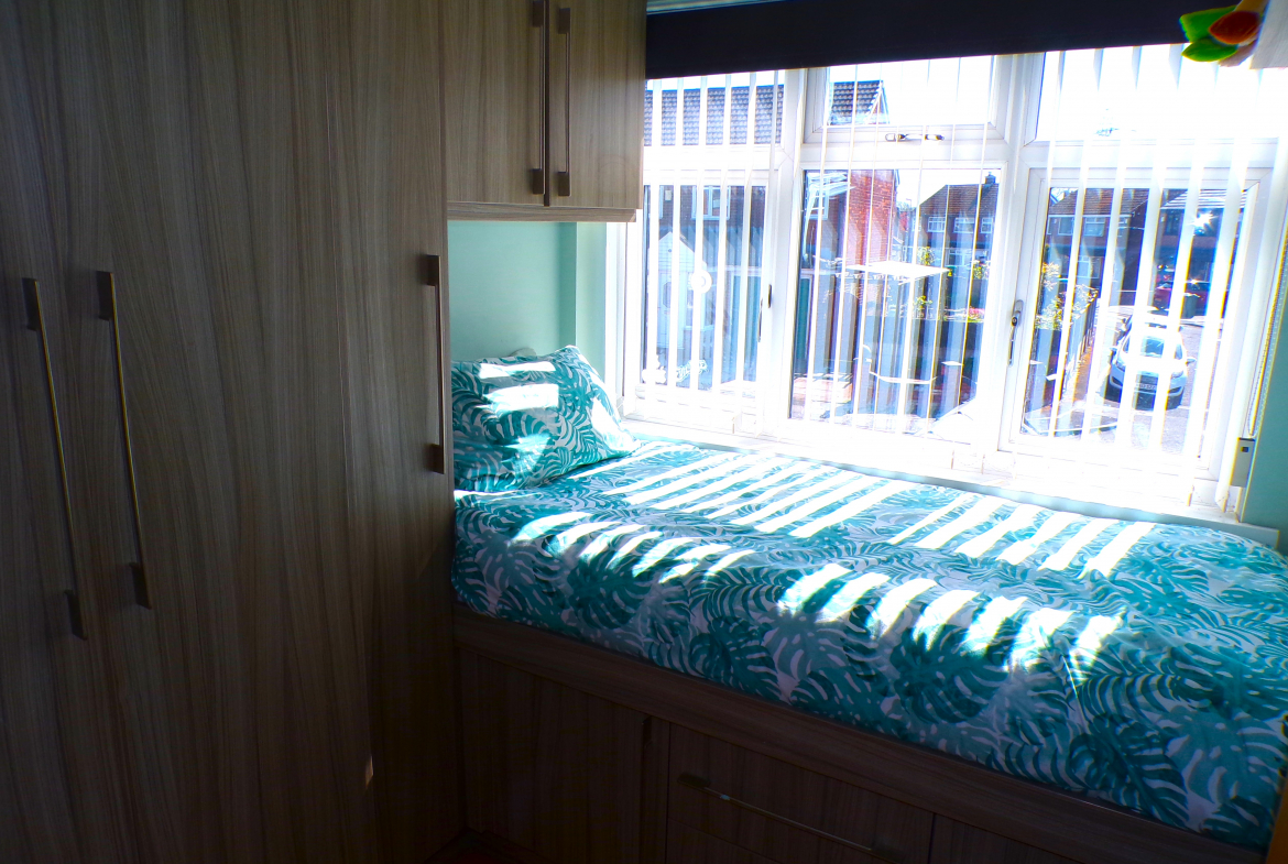 Bedroom 3 – 2.16m x 1.96m (7’1 x 6’5) – Front aspect. Fitted wardrobes & bed. Radiator.