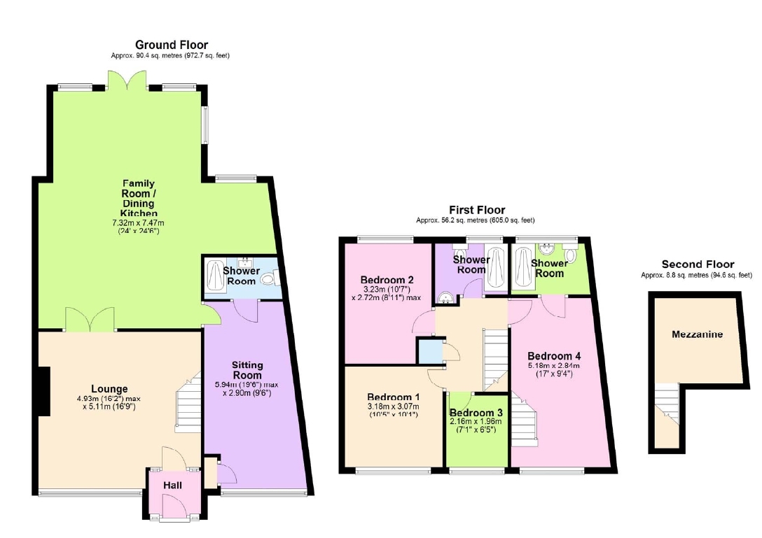 Bedroom 4 – 5.18m x 2.84m (17’0 x 9’4) – Side aspect. Fitted wardrobes. Stairs off to Mezzanine sleeping area. Radiator. Velux window.