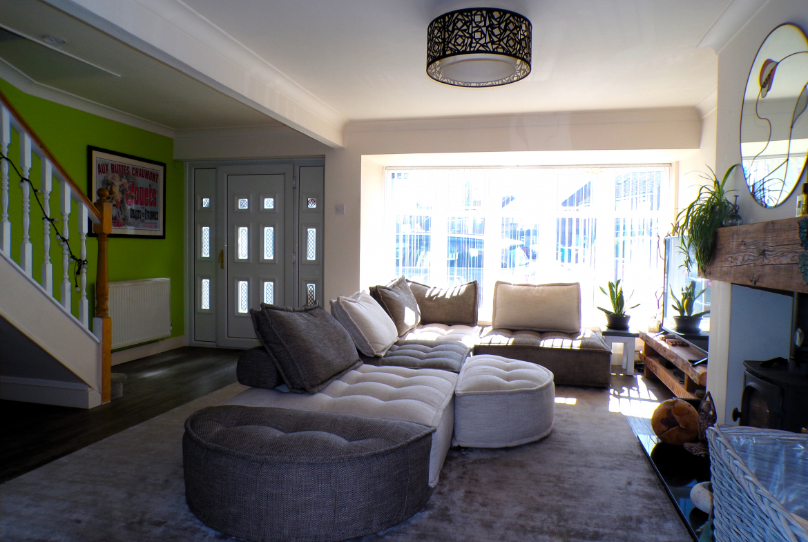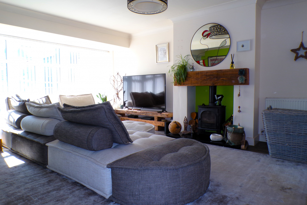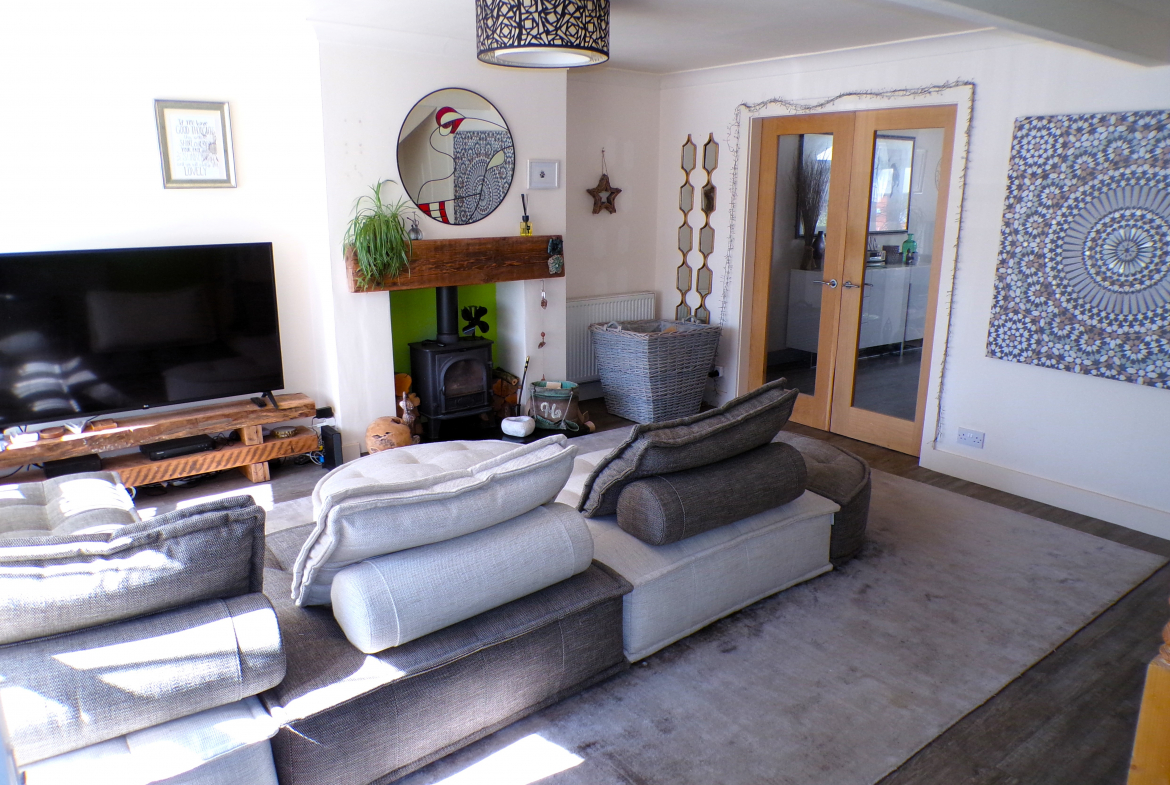 Lounge – 4.93m x 5.11m (16’2 x 16’9) – Open plan stairs off. Log burner fire. 2 radiators. Double doors through to family room.