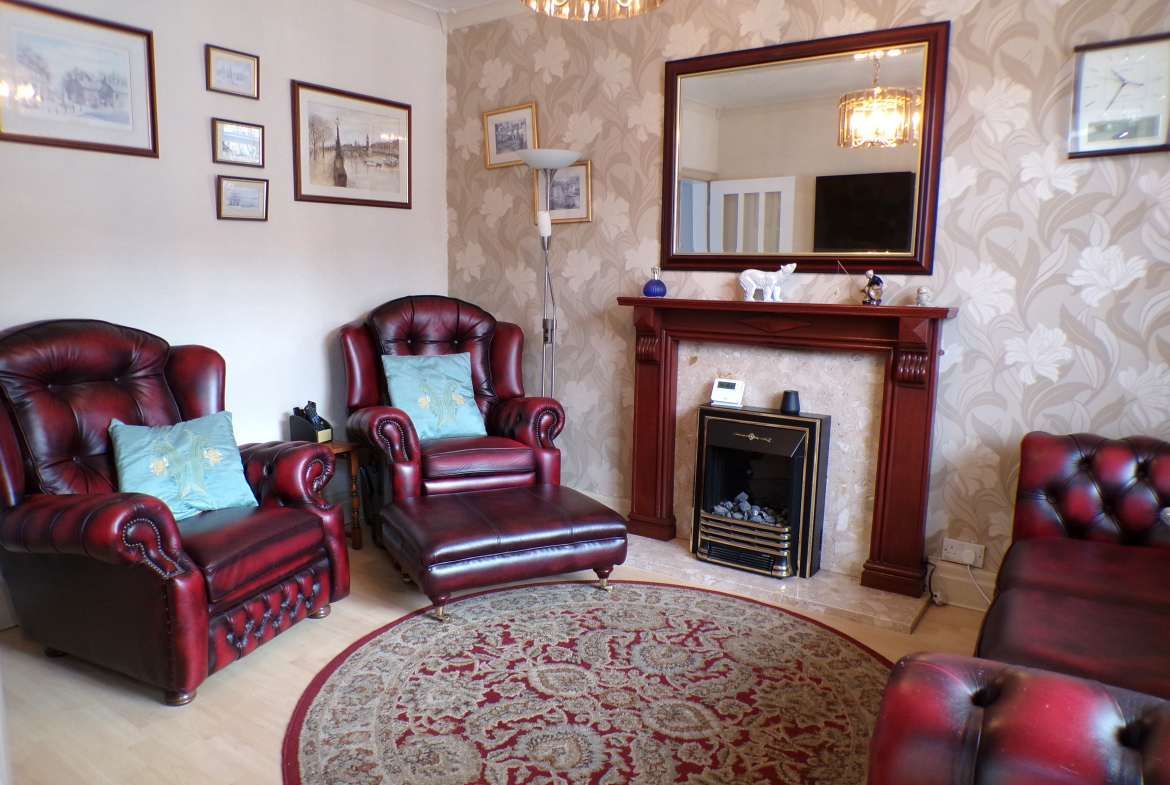Lounge – 3.86m x 3.38m (12’8 x 11’1) – Fitted electric fire. Feature fireplace. Radiator.