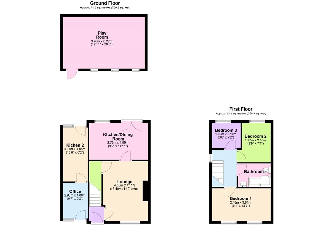 Office – 2.92m x 1.88m (9’7 x 6’2) – Part of the extension accessed externally. Leads through to 2nd kitchen.