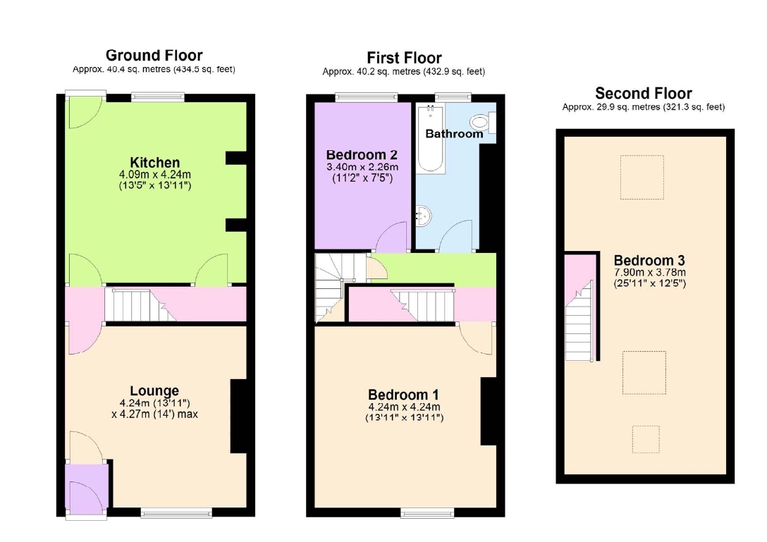 Lounge – 4.24m x 4.27m (13’11 x 14’0) – Feature fireplace. 2 radiators.