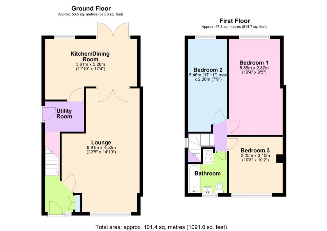 Utility Room – (1.80mx2.29m) – Ceramic floor tiled. Plumbed for washer.