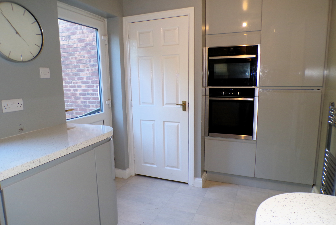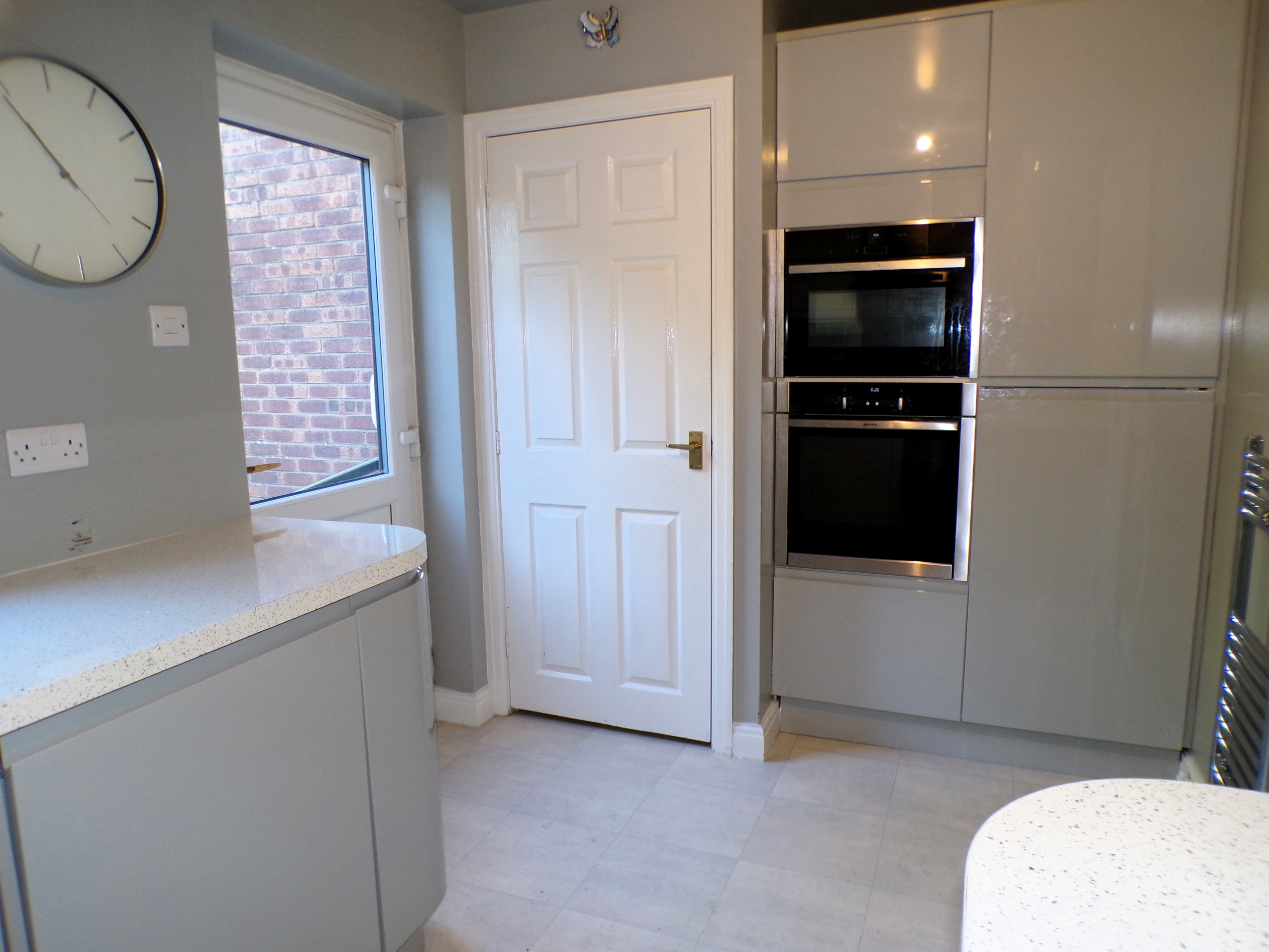 Kitchen – 2.18m x 3.43m (7’2 x 11’3) – Modern fitted wall & base units incorporating double oven, hob & extractor. Single sink & drainer. Integrated fridge, freezer & washer. Storage cupboard with combi gas central heating boiler. Heated towel rail.