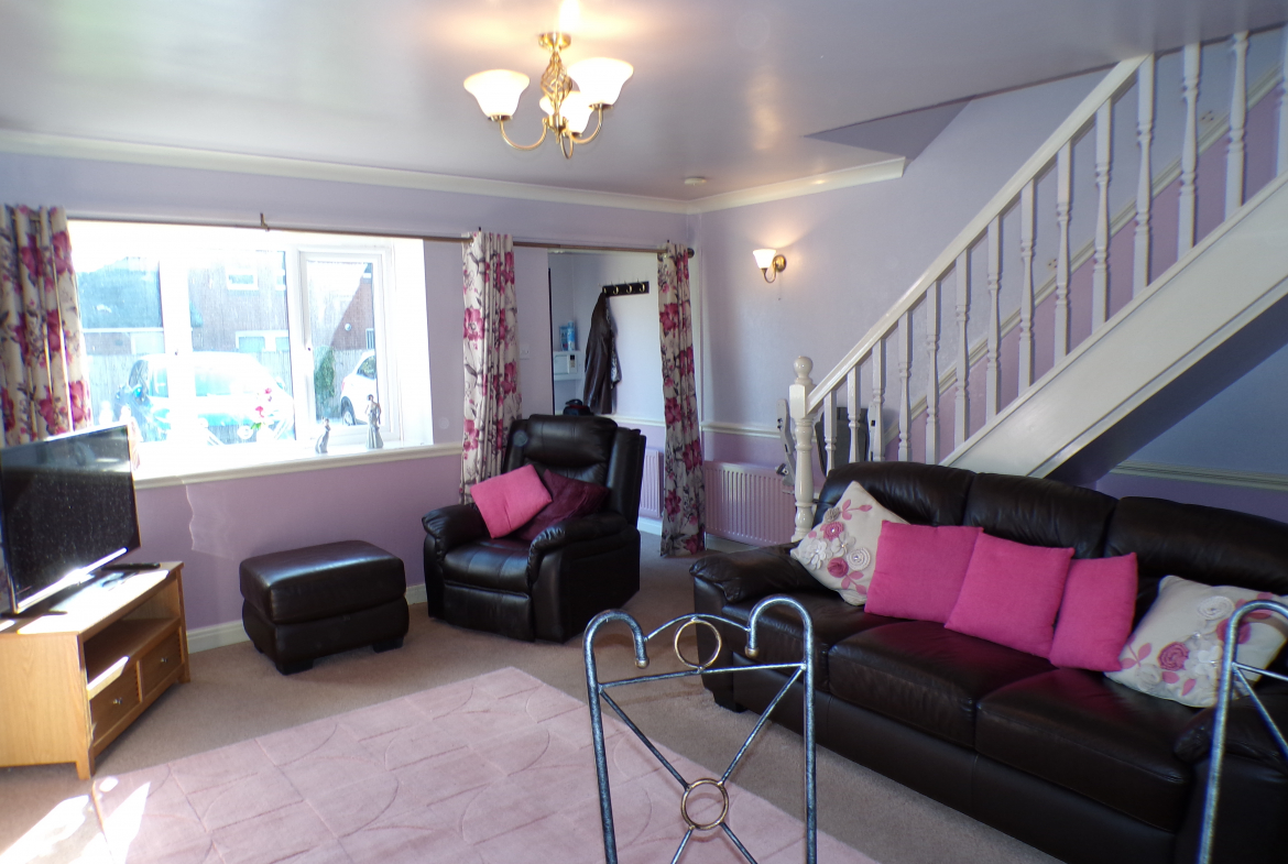 Lounge – 4.93m x 4.22m (16’2 x 13’10) – Fitted electric fire. Feature fireplace. Open plan stairs off. Radiator.