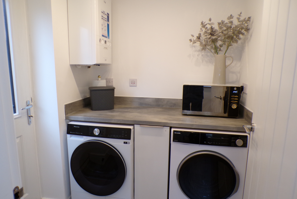 Utility Room – 1.75m x 1.60m (5’9 x 5’3) – Plumbed for washer. Combi gas central heating boiler. Radiator.
