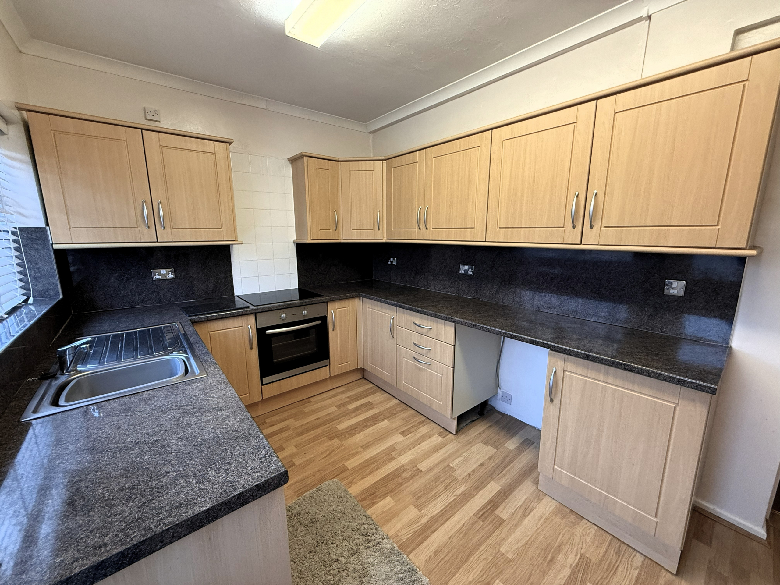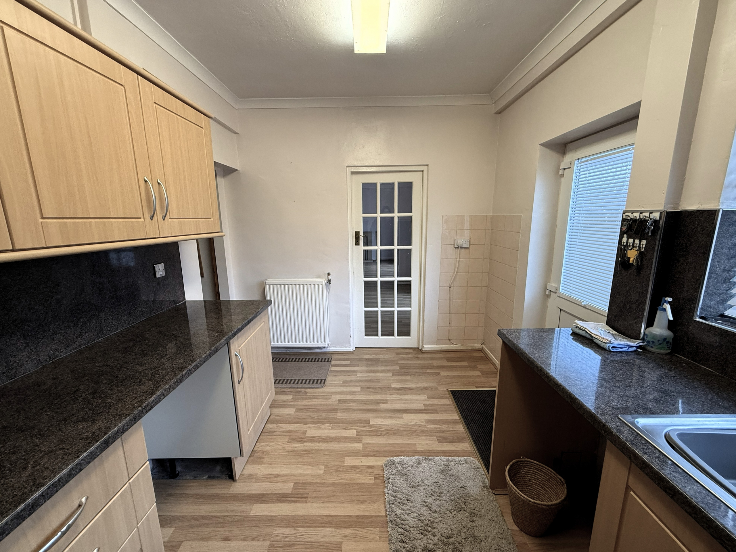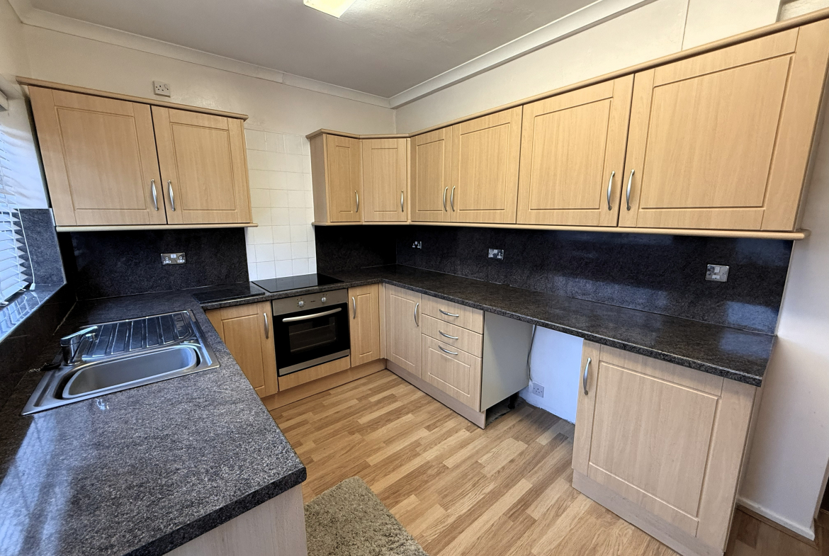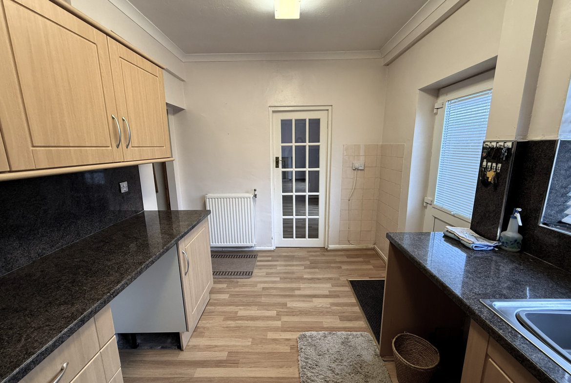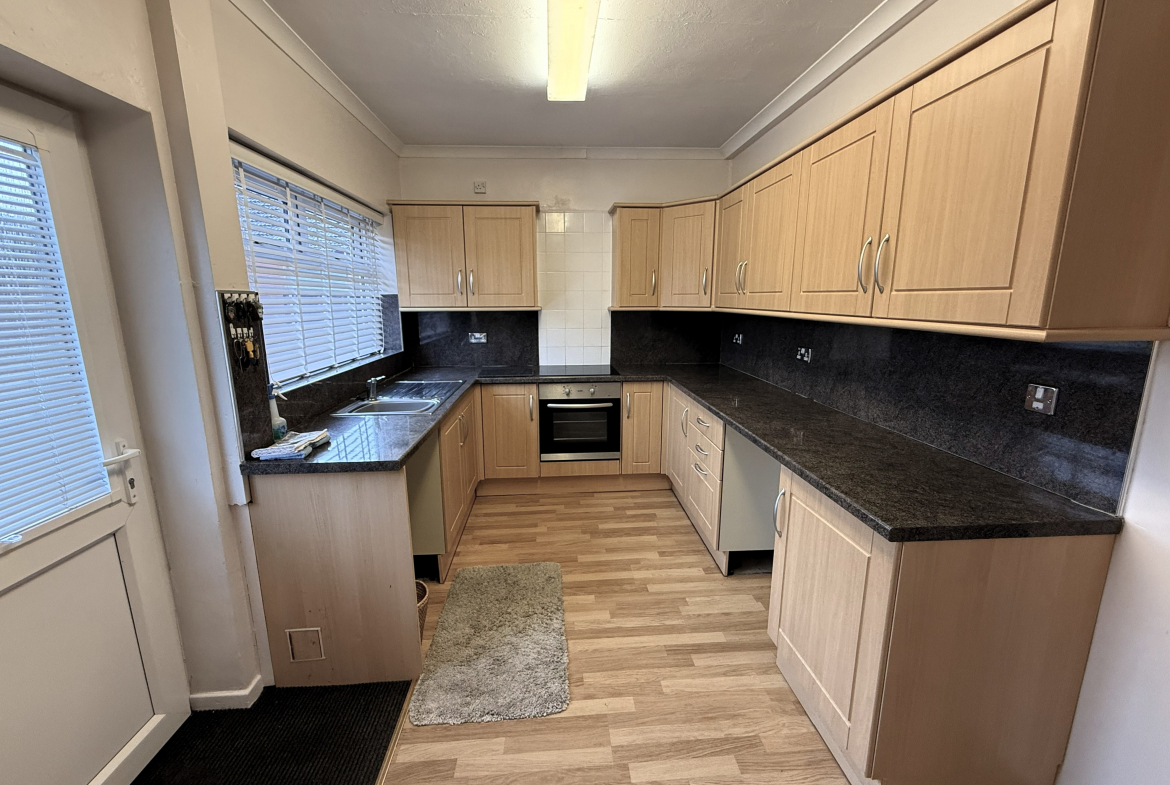 Kitchen – 8’5×13’3 (2.57mx4.04m) – Radiator. Fitted wall and base units incorporating oven and hob. Stainless steel sink and drainer. Plumbed for washer.
