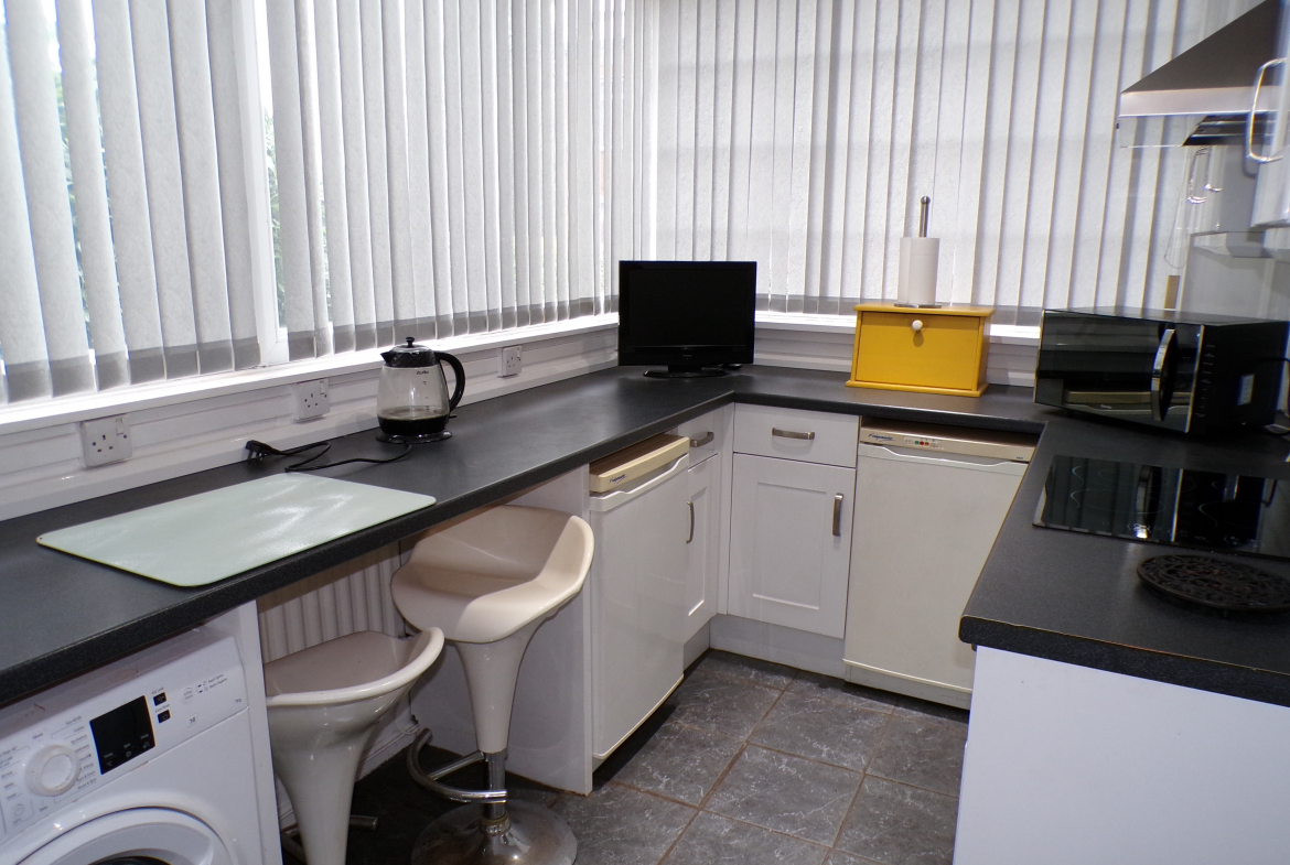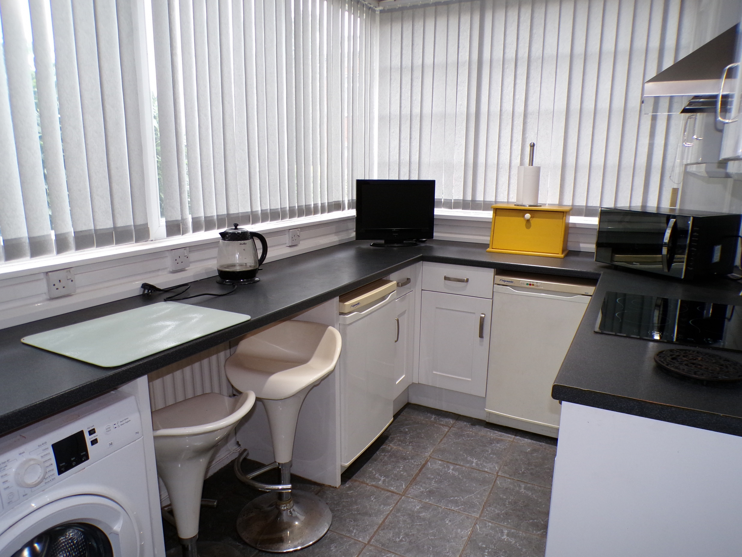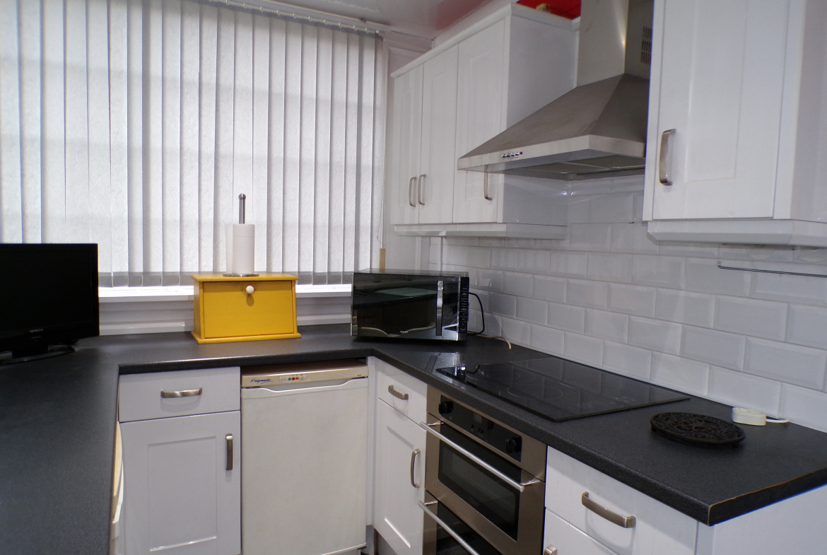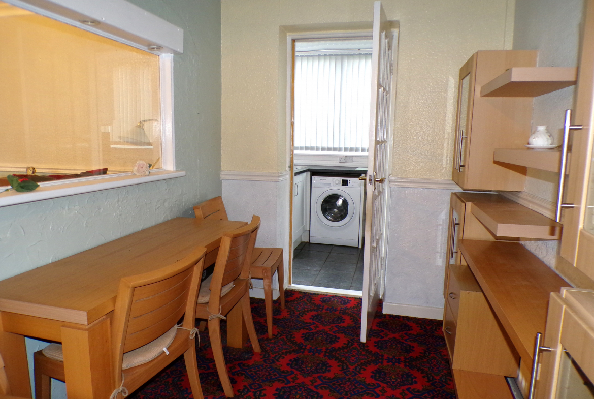 Kitchen – 3.61m x 2.11m (11’10 x 6’11) – Fitted wall & base units incorporating oven, hob & extractor. Stainless steel sink, rinser & drainer. Part ceramic wall tiled. Ceramic floor tiled. Plumbed for washer.