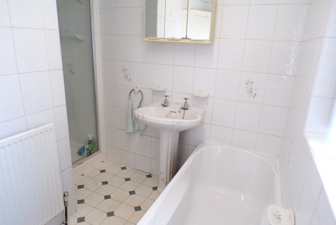 Bathroom – 4 piece white suite with independent shower cubicle. Ceramic wall tiled. Radiator.