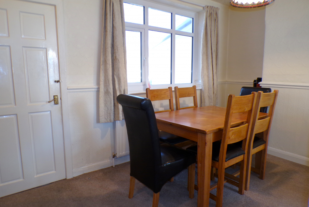 Lounge/Dining Room – 7.16m x 2.97m (min) 4.42m (max) (23’6 x 9’9 (min) – Living flame gas fire. Feature fireplace. 2 radiators. Under stairs storage.