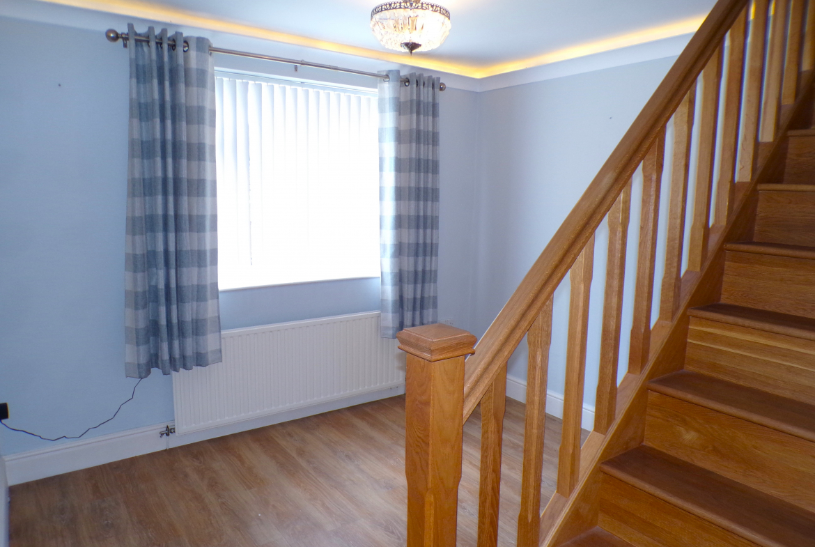 Dining Room – 3.18m x 3.18m (10’5 x 10’5) – Open plan stairs off. Radiator.