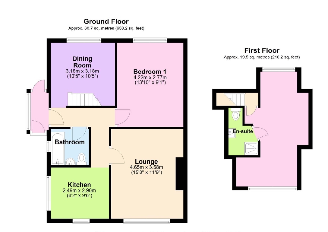 Lounge – 4.65m x 3.58m (15’3 x 11’9) – Living flame gas fire. Feature fireplace. Radiator.