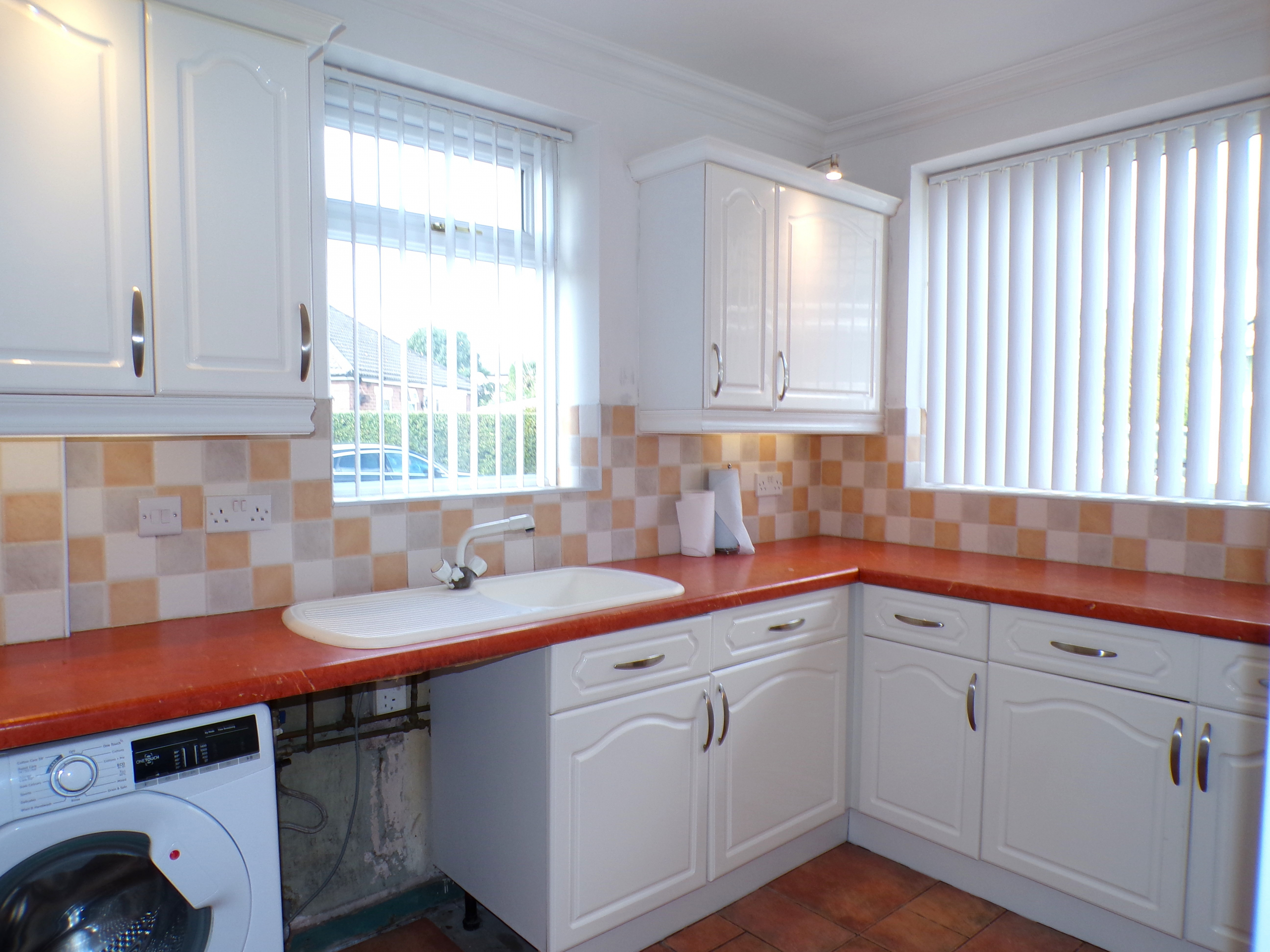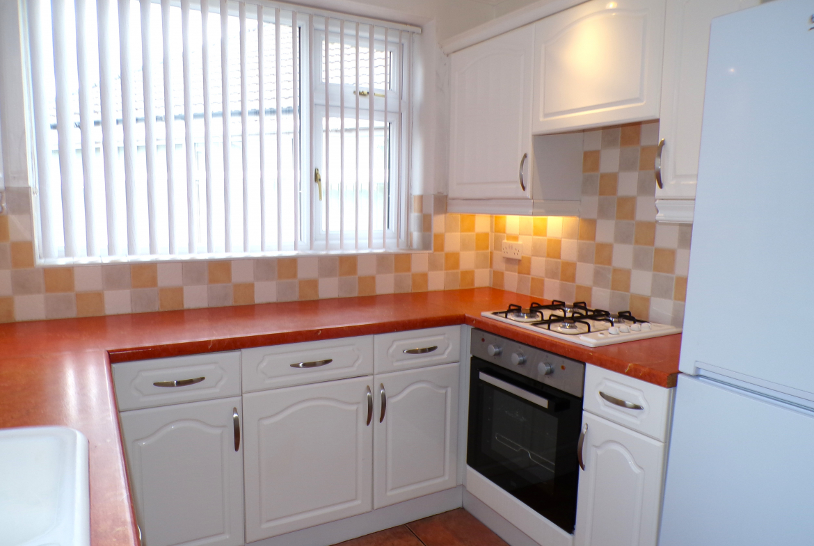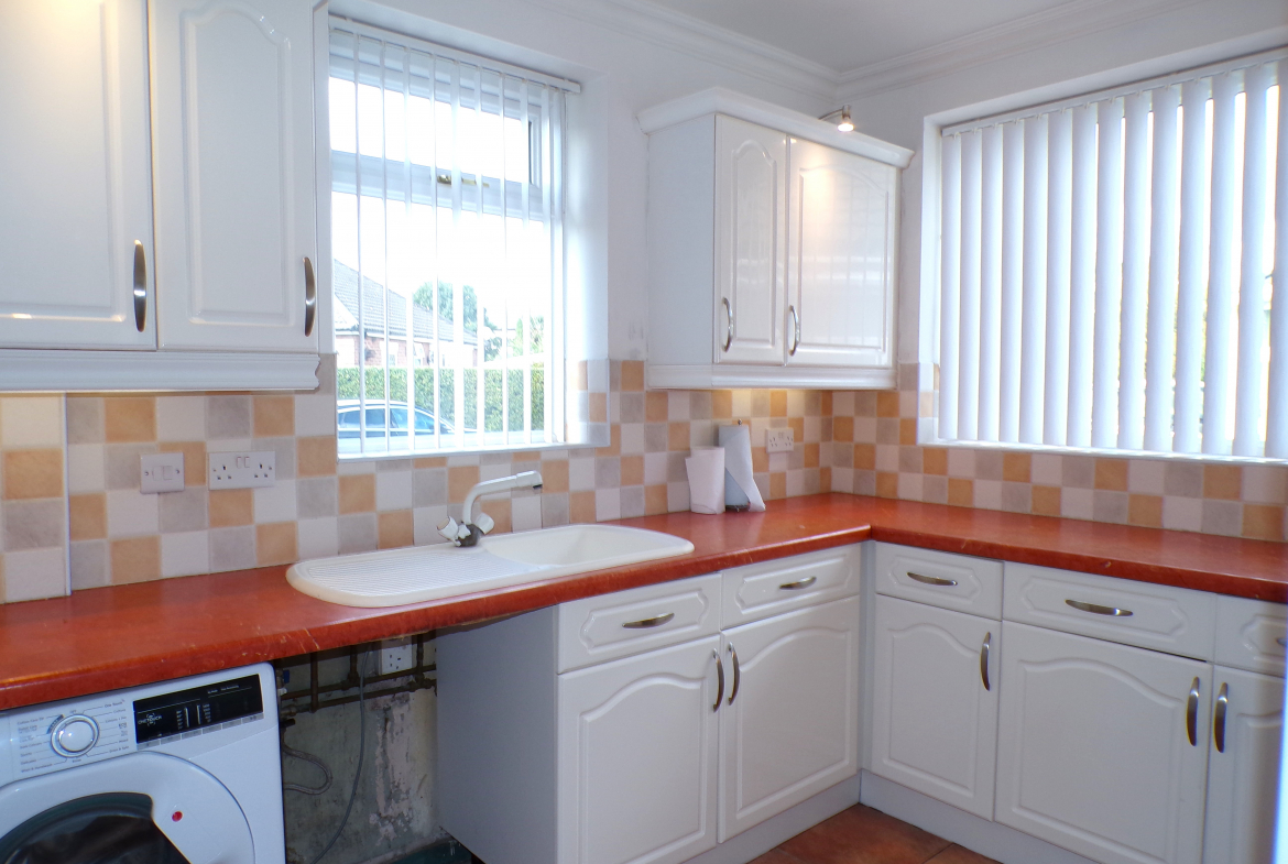 Kitchen – 2.49m x 2.90m (8’2 x 9’6) – Fitted wall & base units incorporating oven, hob & extractor. Single sink & drainer. Part ceramic wall tiled. Ceramic floor tiled. Radiator. Plumbed for washer.