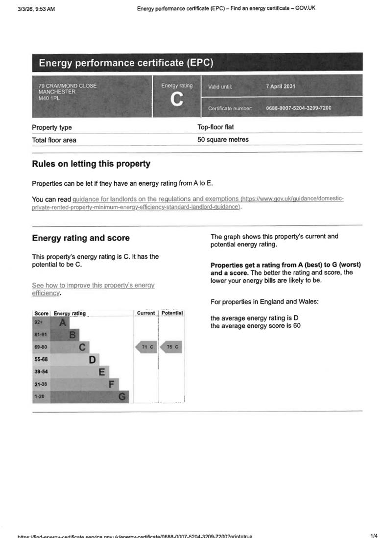 Tenure & Council Tax – We have been advised that this property is Leasehold on a 999 year lease with a fixed ground rent of approx. £10 per annum. The Service Charge is approx. £97 per annum. The council tax is in Band A with Manchester Council.